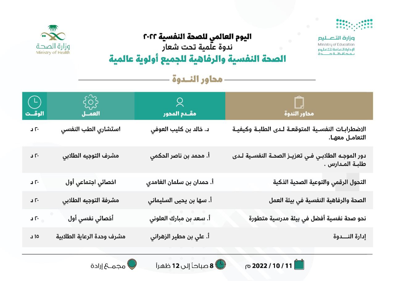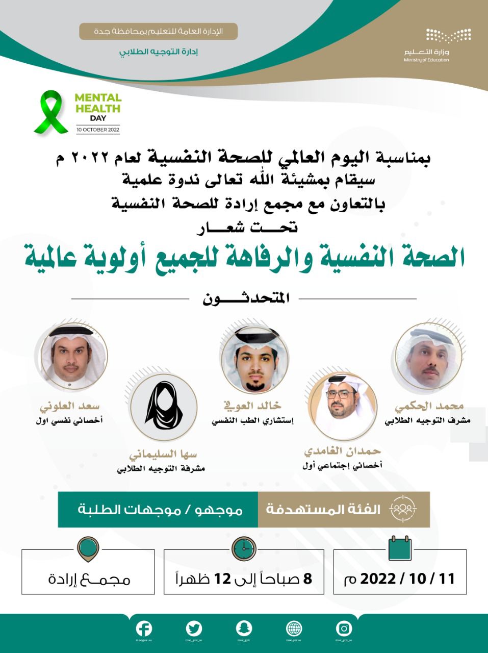 مجمع إرادة والصحة النفسية لخدمات إرادة بجدة يدشن فعالية اليوم العالمي للصحة النفسية 2022م
