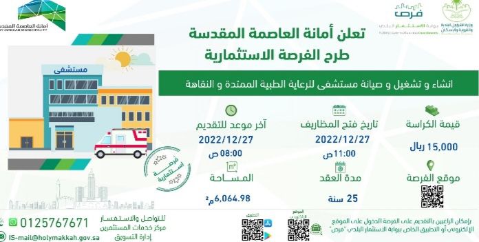 أمانة العاصمة المقدسة تعلن عن طرح فرص استثمارية متنوعه عبر ” فرص”