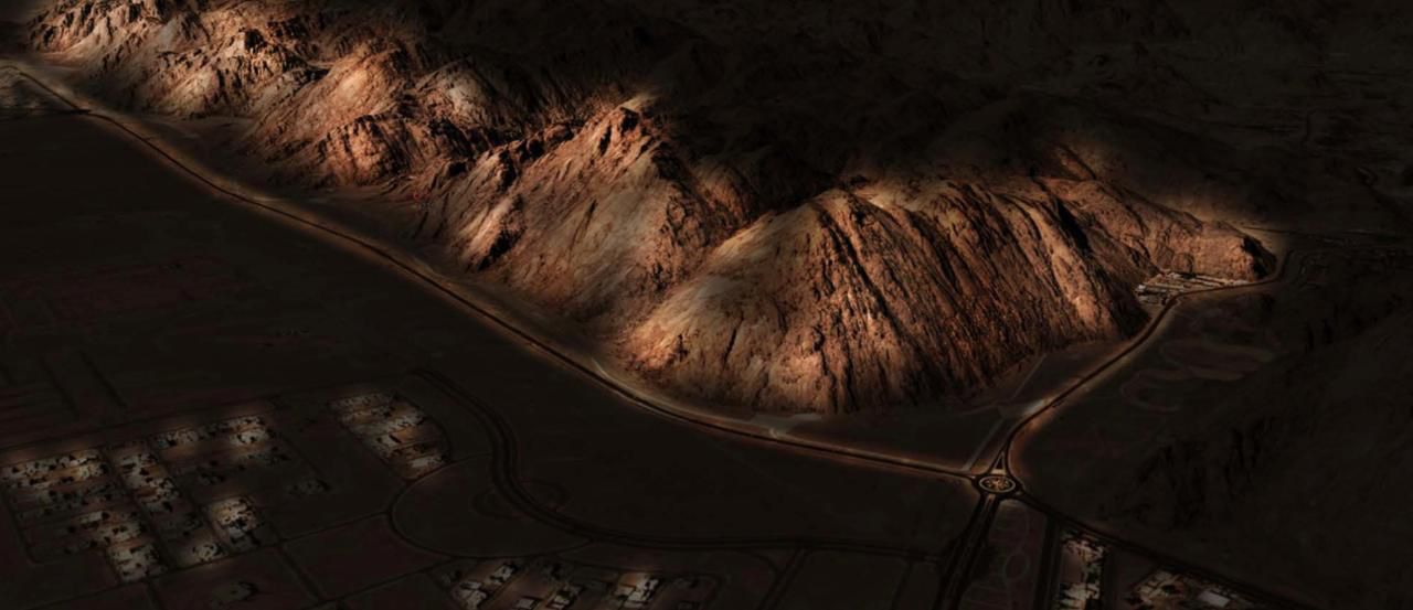 مضيفاً المهندس آل علي أن هذه الجبال تعتبر ذات قيمة جمالية بديعة في الفترة النهارية فقط لذا حرصت أمانة المنطقة ممثلة في إدارة مشاريع الإنارة على تحسين هذه الواجهة الجبلية خلال الفترة المسائية بتقنيات جديدة ووحدات إضاءة تفاعلية وموفرة للطاقة تحقق كفاءة الاستهلاك وكفاءة الإنفاق ، يتم بها عرض العديد من السيناريوهات من خلال 1350 وحدة إضاءة مربوطة بشبكة بيانات عالية السرعة على هذه الواجهة الجبلية التي تمتد لأكثر من ٥٠٠٠ متر طولي بمشهد بانورامي يقع في أعلى المستويات الأرضية ارتفاعاً بمدينة حائل, يتم مشاهدتها بوضوح تام على بُعد أكثر من ٢٥ كلم.