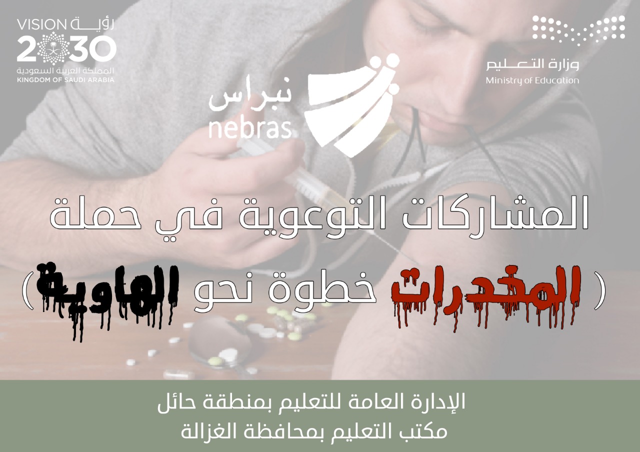 ودشن مدير مكتب التعليم بمحافظة الغزالة خالد فهيد الثويني معرض «المخدرات خطوة نحو الهاوية » التوعوي بأضرار المخدرات دعمًا للمشروع الوطني لمكافحة المخدرات و الذي يستهدف اسر الطلاب والطالبات وتوعيتهم وطرق الوقاية والعلاج، وتناول المعرض لوحات معبرة ومجسمات توعوية ونشر ثقافة الرقم (1955) الخاص بالمركز الوطني لاستشارات الإدمان (الرشيد) الذي يقدم الاستشارات الفردية والأسرية المتعلقة بمشكلة المخدرات الذي يتعامل معها بسرية تامة، ولا يتم فيها مساءلة المريض، ولا يعاقب وفقًا لما جاء في نظام مكافحة المخدرات، إضافة إلى نشر الوعي والثقافة بين شرائح المجتمع بمشكلة المخدرات، والمساهمة في التوجيه العلاجي لأصحاب المشكلات الإدمانية والقضايا المرتبطة بها، إضافة إلى نقل مرضى الإدمان بسرية تامة ودون مساءلة، كما يتم توزيع مجسمات وكتيبات تعريفية، وعرض أفلام مرئية توعوية من إنتاج نبراس، وتوزيع نشرات ومرسم حر توعوي للزوار.