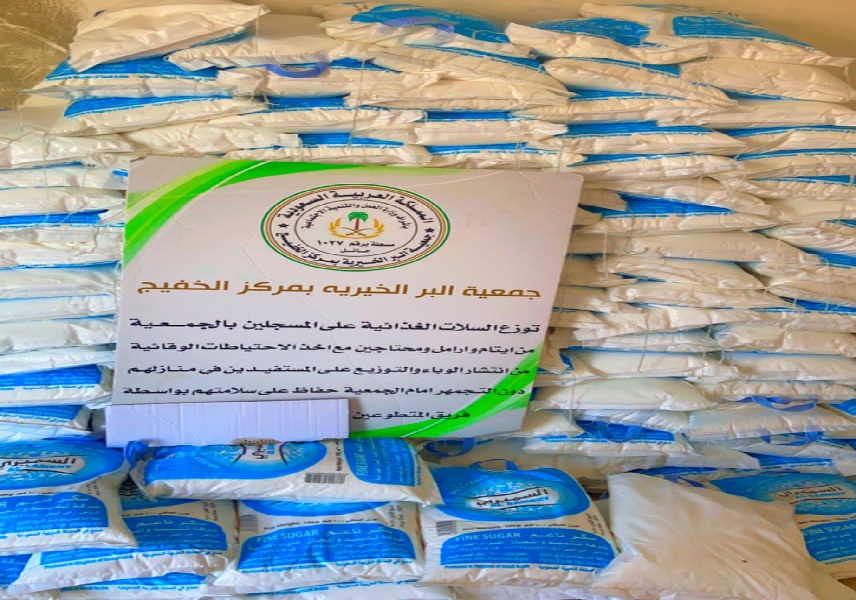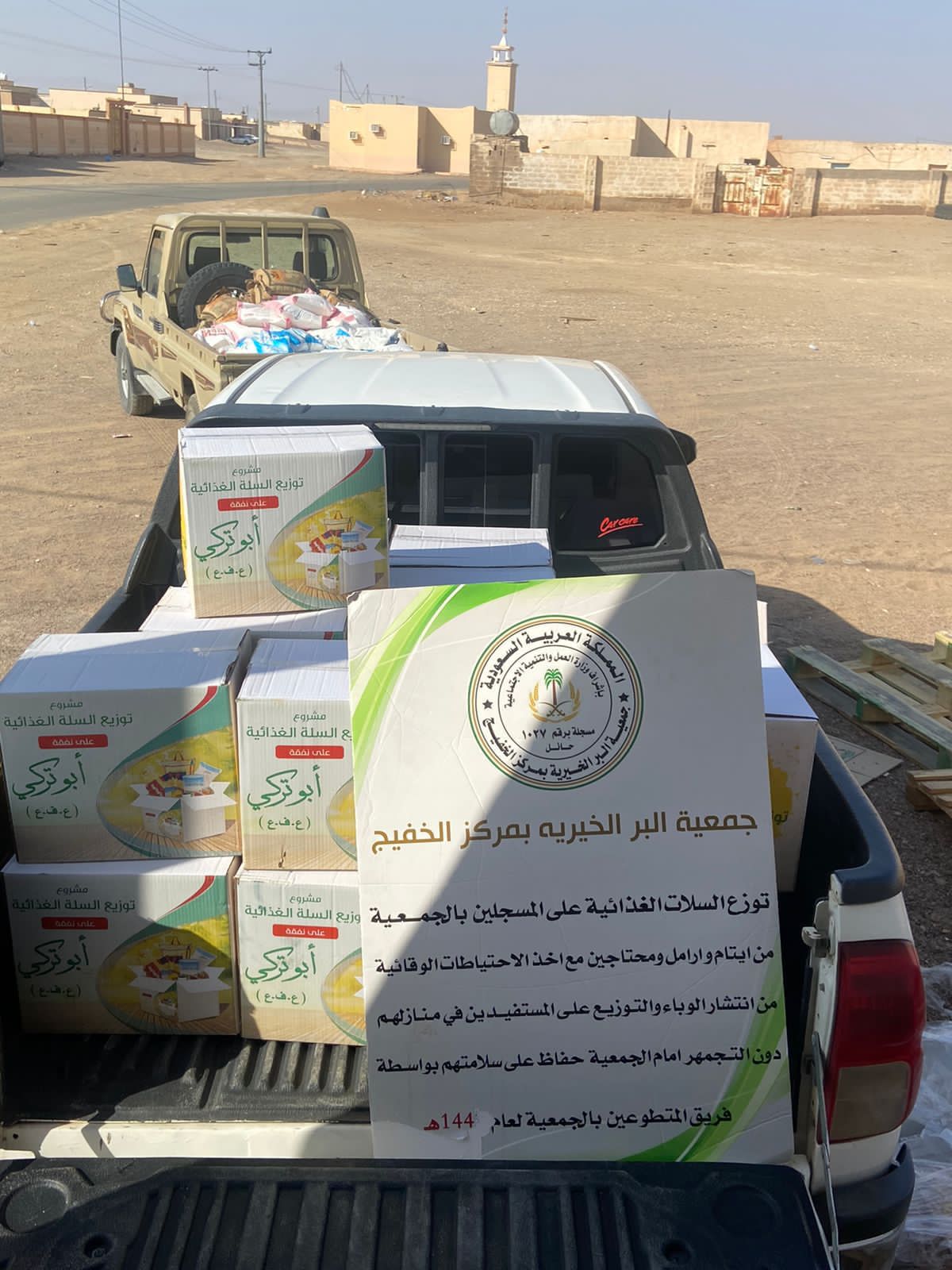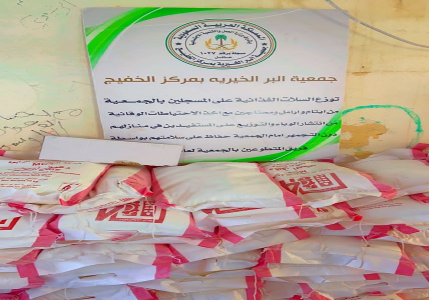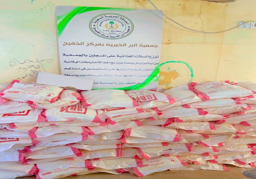 قامت جمعية البر الخيرية بمركز الخفيج يوم الإثنين الموافق 21 / 3 / 1444 هـ، بتوزيع سلال غذائية على المحتاج المسجلين بالجمعية من أيتام وأرامل ومطلقات وكبار السن.