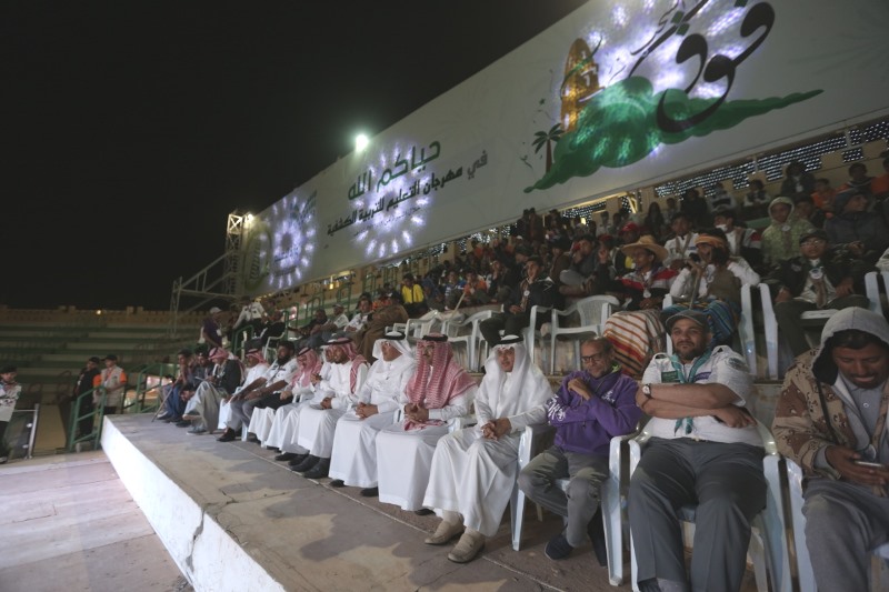 بعدها حضر الضيوف برنامج حفل السمر ضمن البرنامج الزمني لأنشطة و برامج مهرجان التعليم للتربية الكشفية مستمتعين بعددٍ من العروض المسرحية و اللوحات الوطنية و الرقصات الشعبية و موروث المناطق المشاركة في هذه العروض .