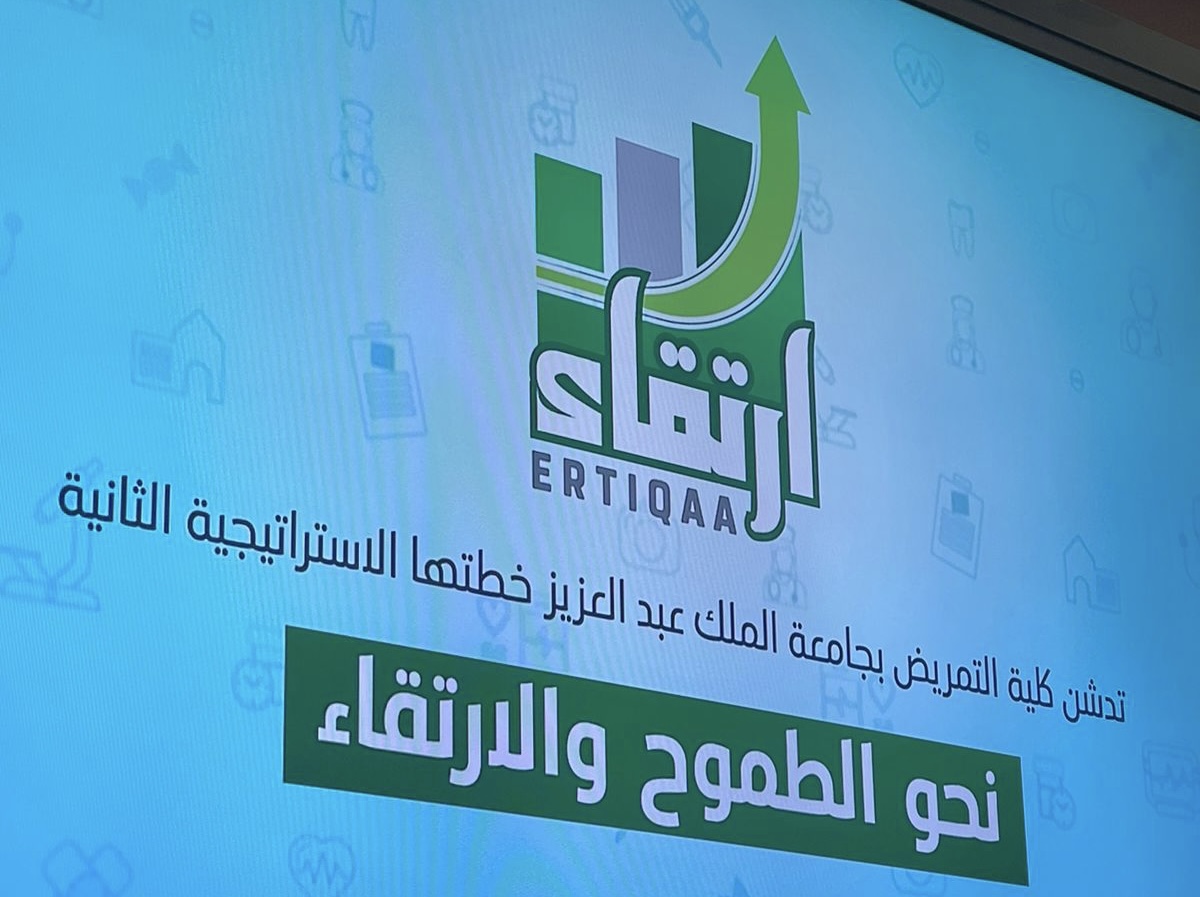 دشنت كلية التمريض بجامعة الملك عبدالعزيز خطتها الإستراتيجية الثانية (ارتقاء) برعاية كريمة من معالي رئيس الجامعة الأستاذ الدكتور عبدالرحمن اليوبي والتي تنوب عنه الأستاذ الدكتور هناء بنت عبدالله النعيم حفظها الله