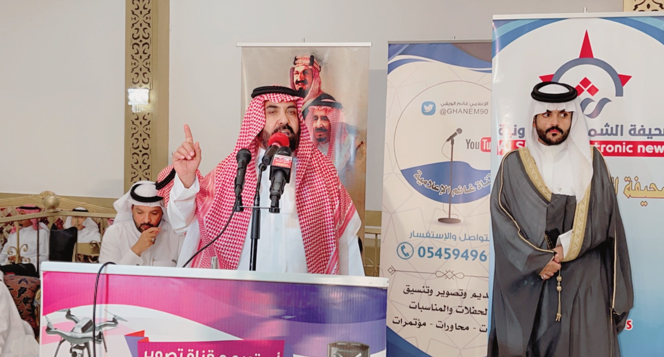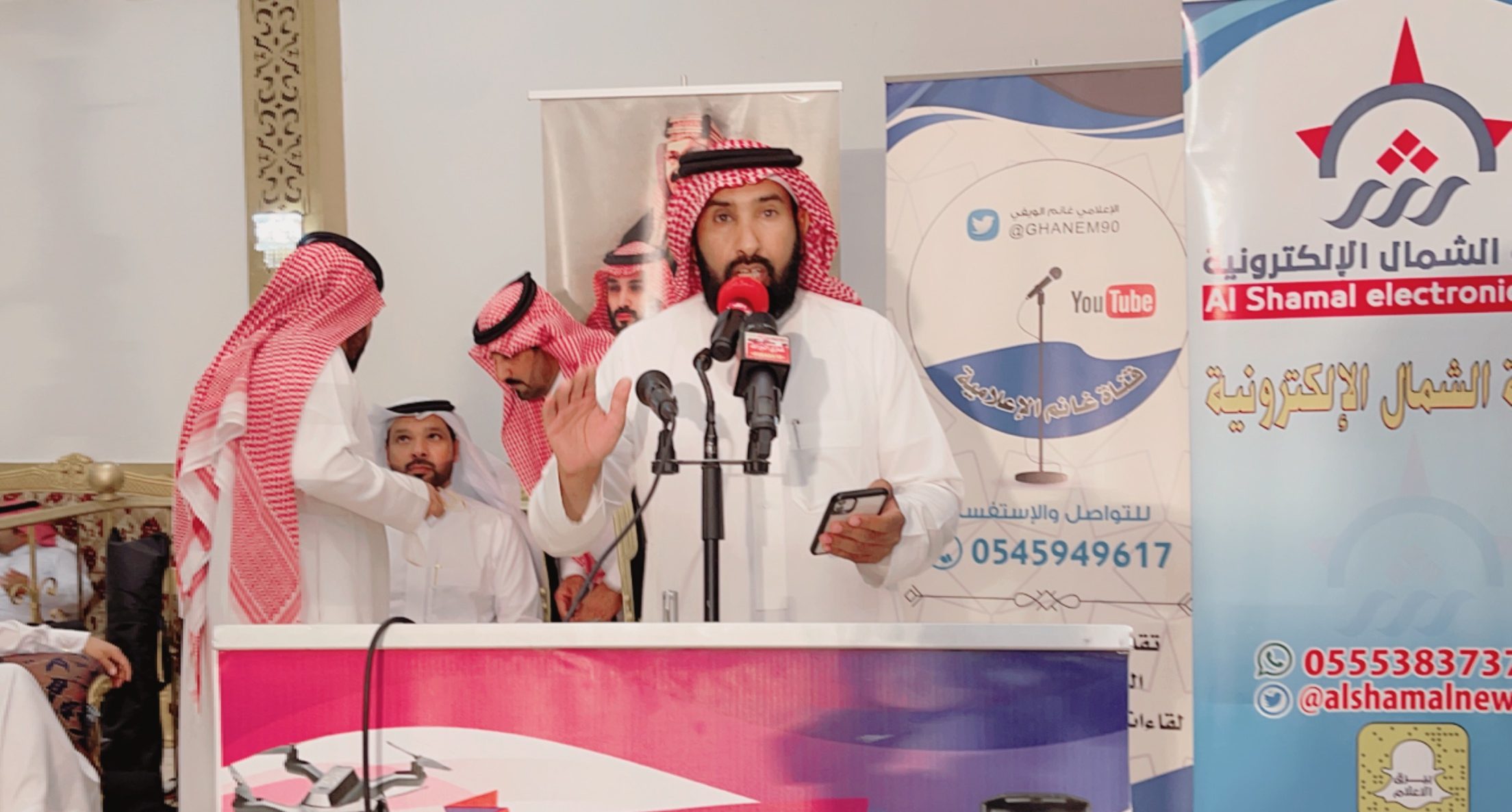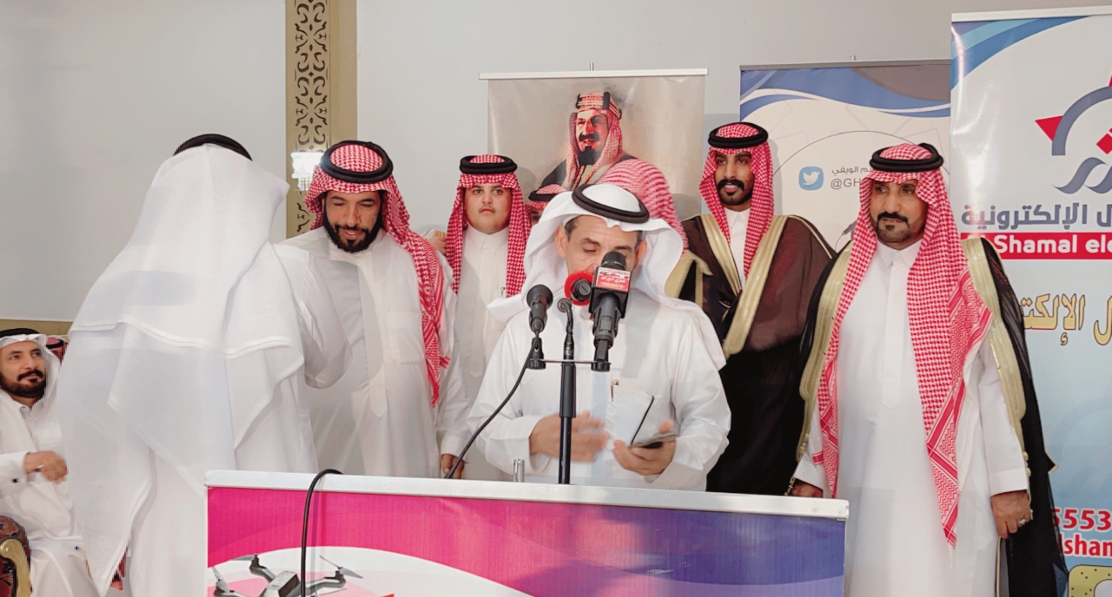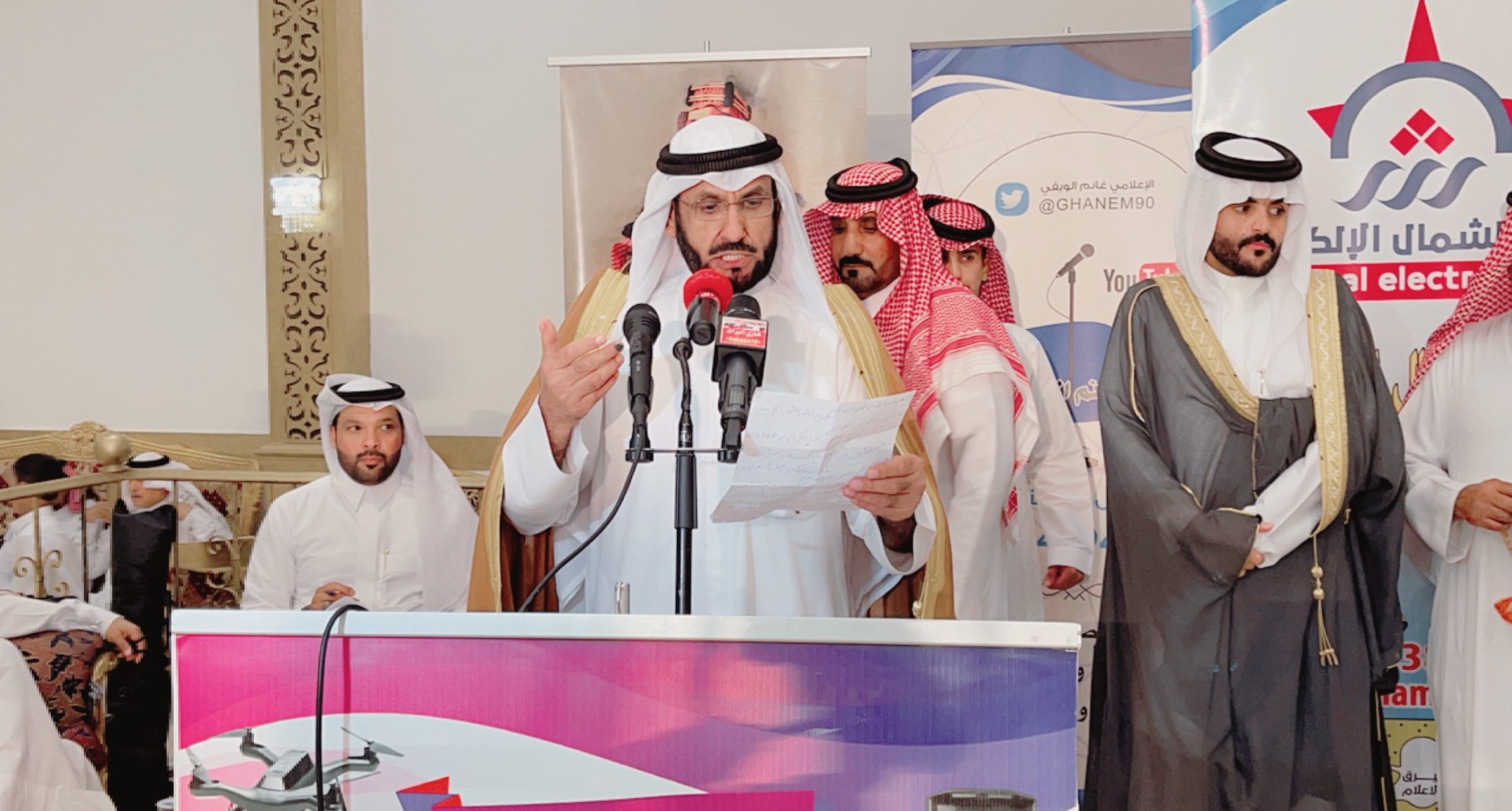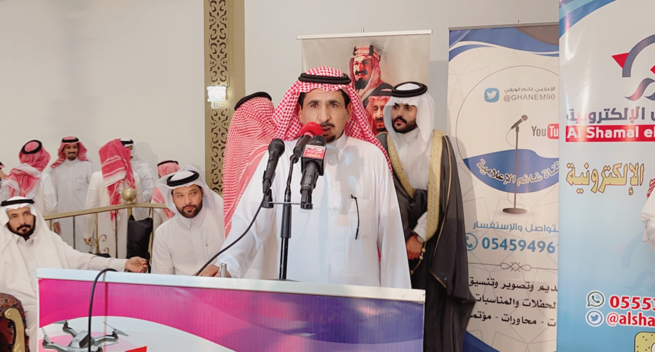 ومن جانبه تحدث رجل الاعمال “سالم بن ساكر الشويلعي ” الشهير بهداج الشوالعة في كلمة خاصة لصحيفة “الشمال” حيث قال: “ياهلا يا مرحبا بك الأستاذ الإعلامي “غانم الويفي” وكذلك أخي رئيس تحرير صحيفة الشمال الإعلامي “عبدالرحمن بن مرشد” ومرحبا وألف تحية، كما أحيي ضيوفنا بهذه الليلة وأقول لهم مرحبا وألف ألف تحية الله يحيي الجميع من بعيد ومن قريب وشكرا لكم وشرفتونا.