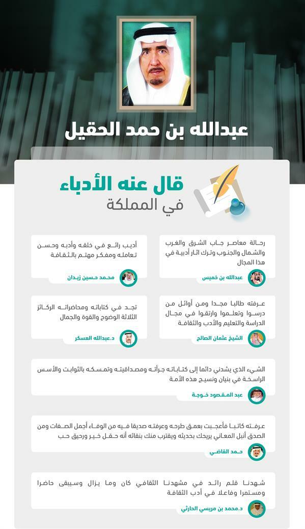 نعت وزارة الإعلام ودارة الملك عبدالعزيز وجمعية الأدب السعودية المؤرخ والأديب والشاعر عبدالله بن حمد الحقيل، الذي وافته المنية اليوم الثلاثاء 30 أكتوبر 2018، عن عمر ناهز 83 عاماً… فمن هو عبدالله الحقيل؟