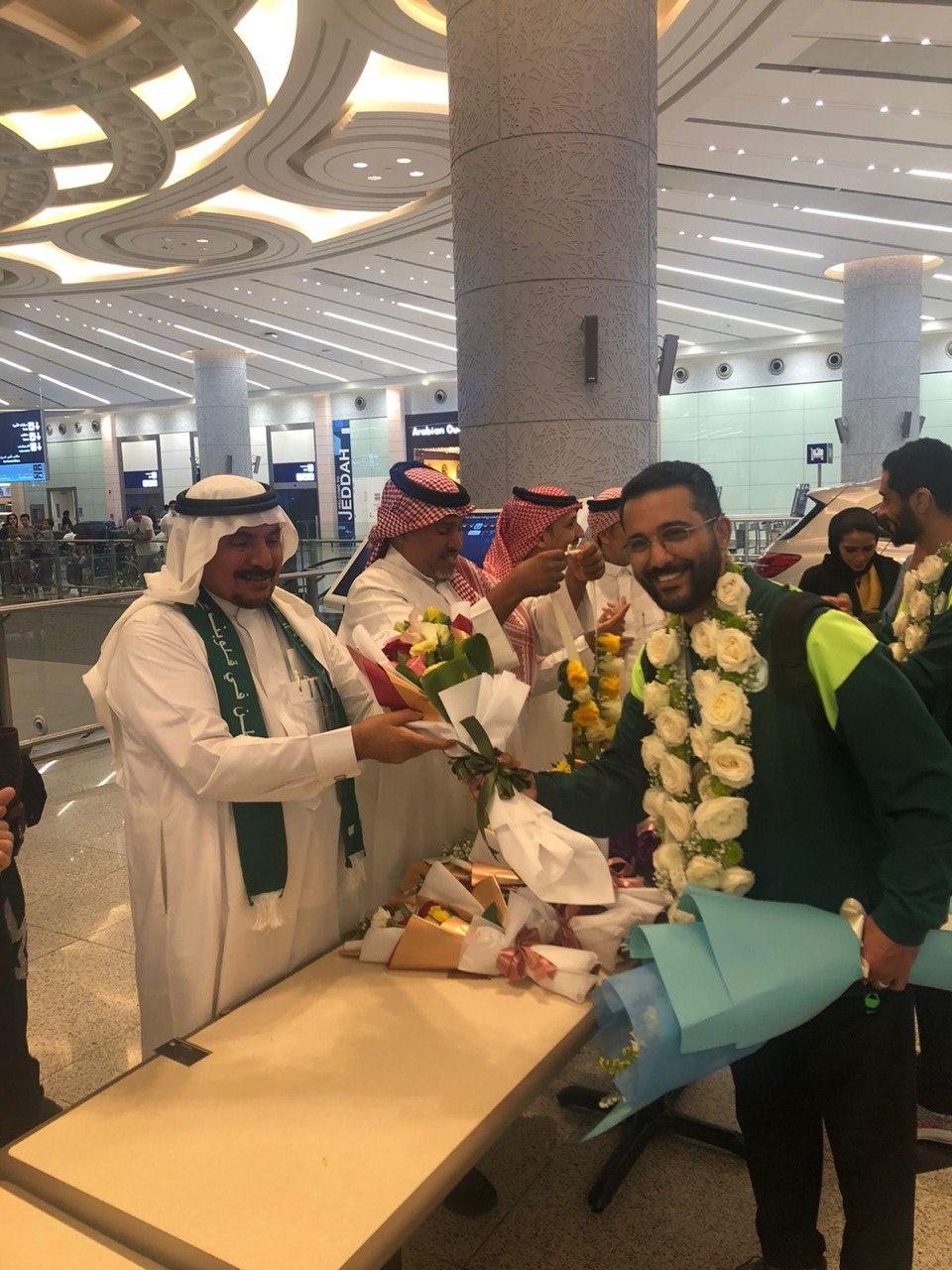 وتم استقبال أفراد البعثة بالورود وبحضور مدير المكتب التنفيذي والعلاقات العامة بمطار جدة ونائب نادي جدة للصم وعدد من أعضاء مجلس إدارة الاتحاد ومحبي رياضة الصم.