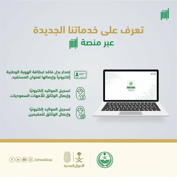 وأشار إلى أن الخدمات الجديدة شملت خدمة إصدار بدل فاقد لبطاقة الهوية الوطنية إلكترونياً وإيصالها إلى عنوان المستفيد، وخدمة تسجيل المواليد إلكترونياً وإيصال الوثائق إلى الأمهات المواطنات، وخدمة تسجيل المواليد إلكترونياً وإيصال الوثائق إلى المقيمين.