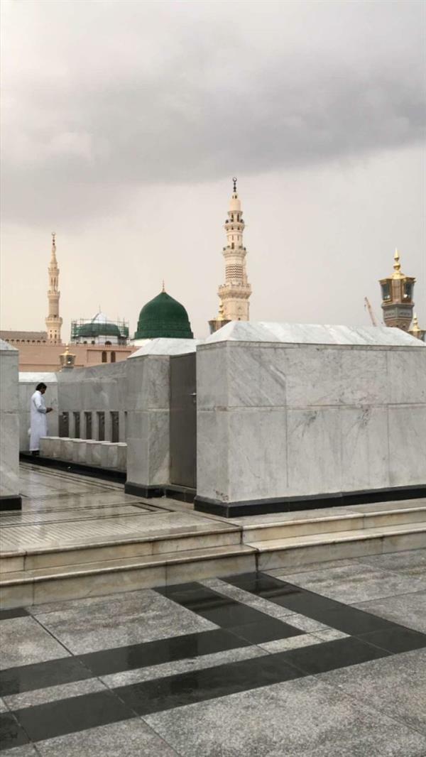 وأظهرت صور وفيديوهات ملتقطة من ساحات المسجد النبوي الشريف جهود إدارة شؤون المسجد النبوي في مواجهة الحالة المطرية، بداية من فتح المظلات في الساحات الخارجية وحتى تصريف المياه في ساحات المسجد النبوي.