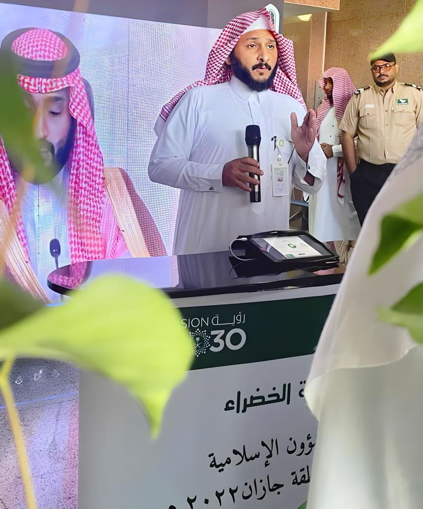 يواصل فرع وزارة الشؤون الشؤون الإسلامية والدعوة والإرشاد في منطقة جازان تفعيل مبادرة السعودية الخضراء والتي تأتي بتوجيه من معالي الوزير الشيخ الدكتور عبد اللطيف بن عبد العزيز آل الشيخ تزامنًا مع قمة الشرق الأوسط الأخضر حيث اطلع فضيلته على عرض مرئي ثم غرس الشجرة الأولى شجرة الآراك إذاناً باطلاق الحملة التي استهدفت أكثر من ٢٠٠ جامع في المنطقة وغرس أكثر من ٦٠٠٠ شجرة متنوعة .