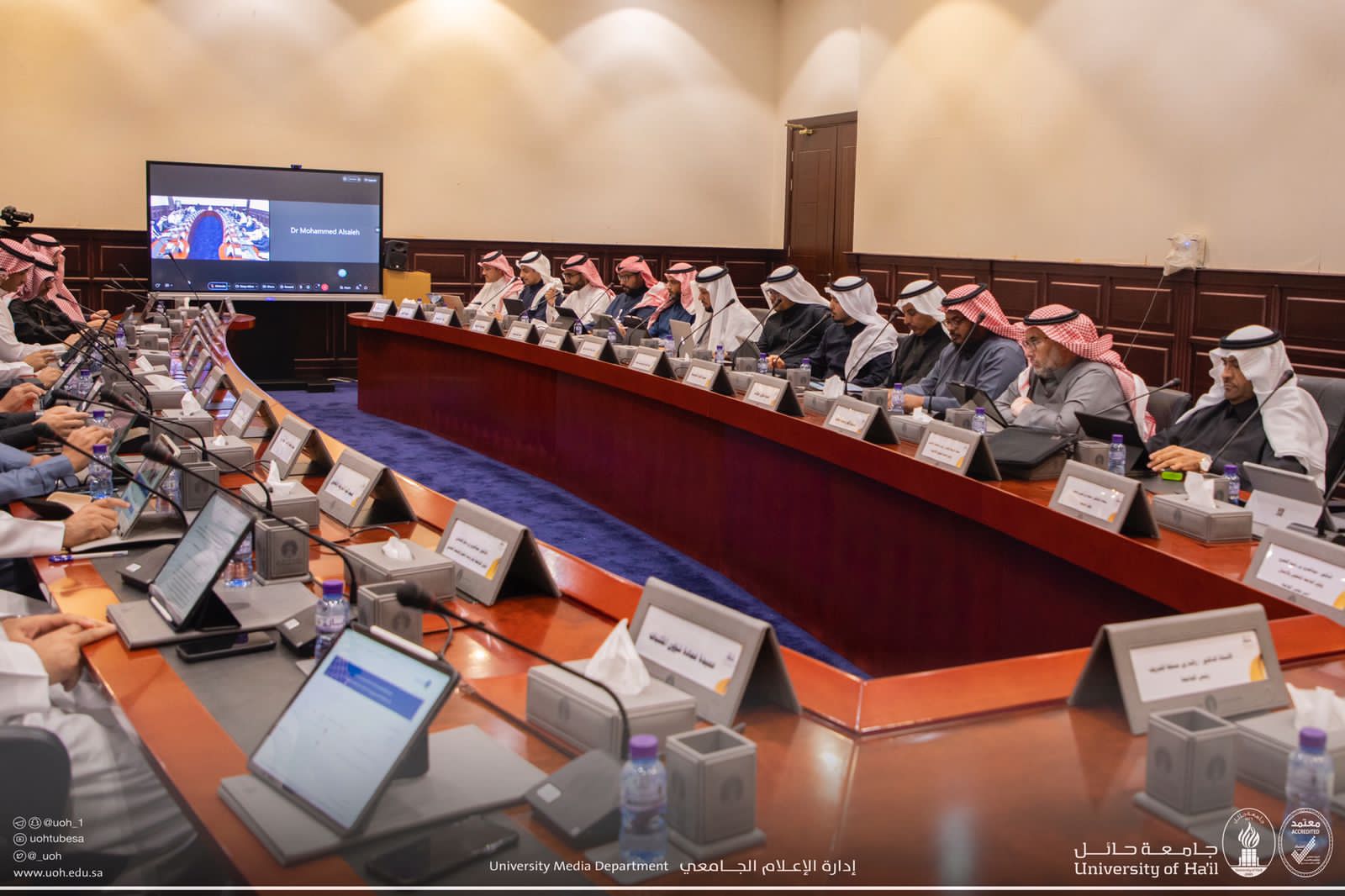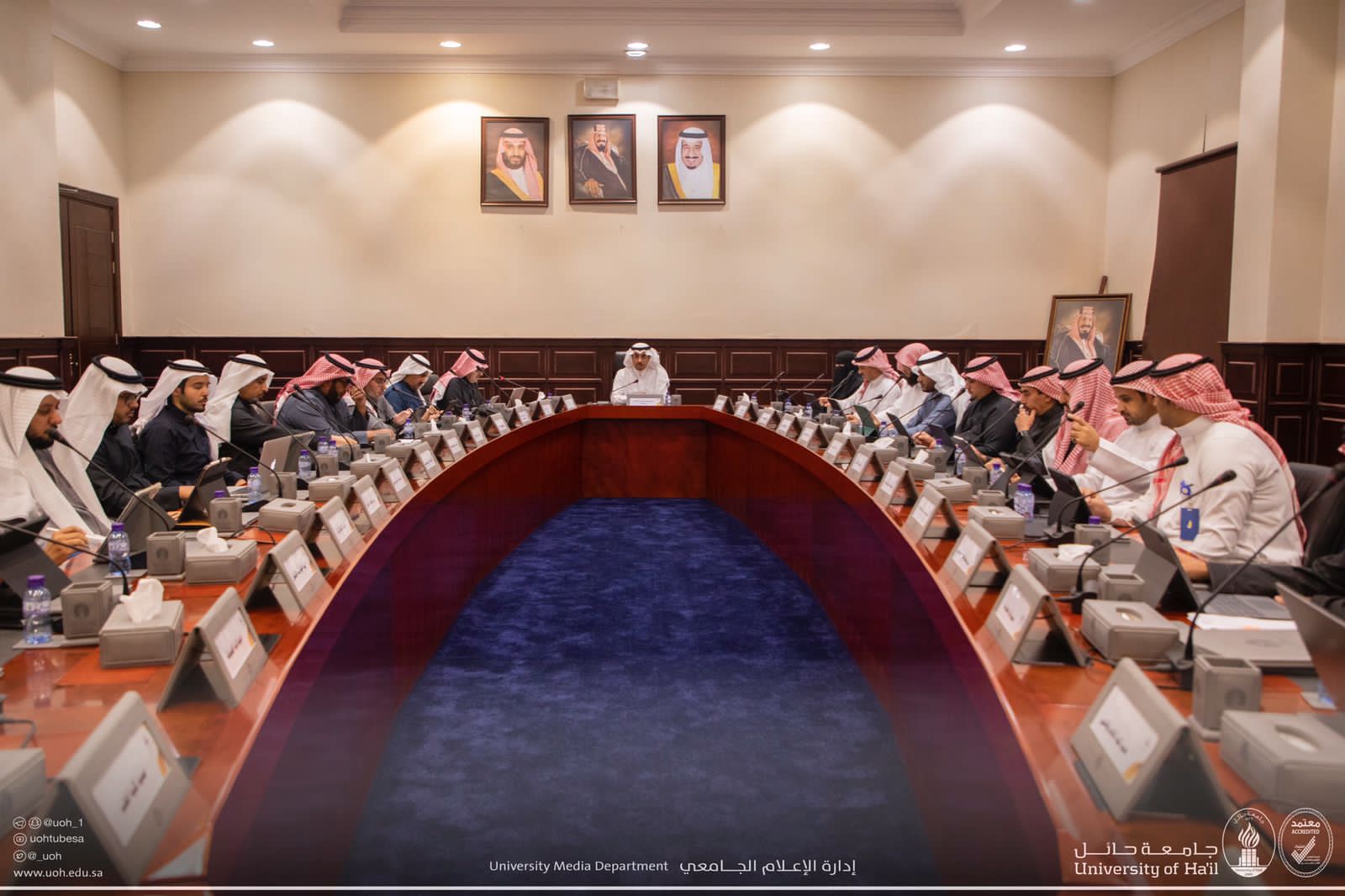 نيابة عن معالي وزير التعليم، رئيس مجلس جامعة حائل، رأس سعادة رئيس جامعة حائل، أ.د. راشد بن مسلط الشريف، اليوم الأحد مجلس الجامعة الثالث للعام الجامعي ١٤44هـ، بحضور سعادة أمين مجلس الجامعات، د. محمد الصالح، وأصحاب السعادة أعضاء مجلس الجامعة.