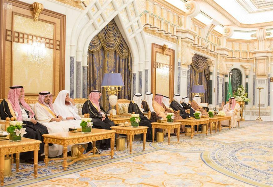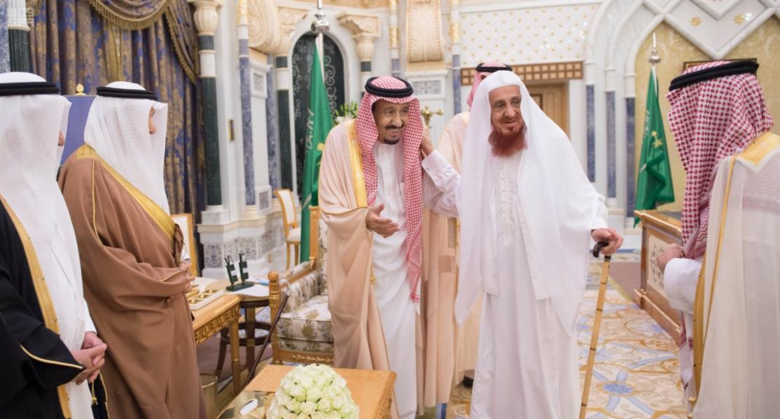 بالصور.. خادم الحرمين الشريفين يستقبل وزراء سابقين وكتابا ومثقفين بقصر اليمامة