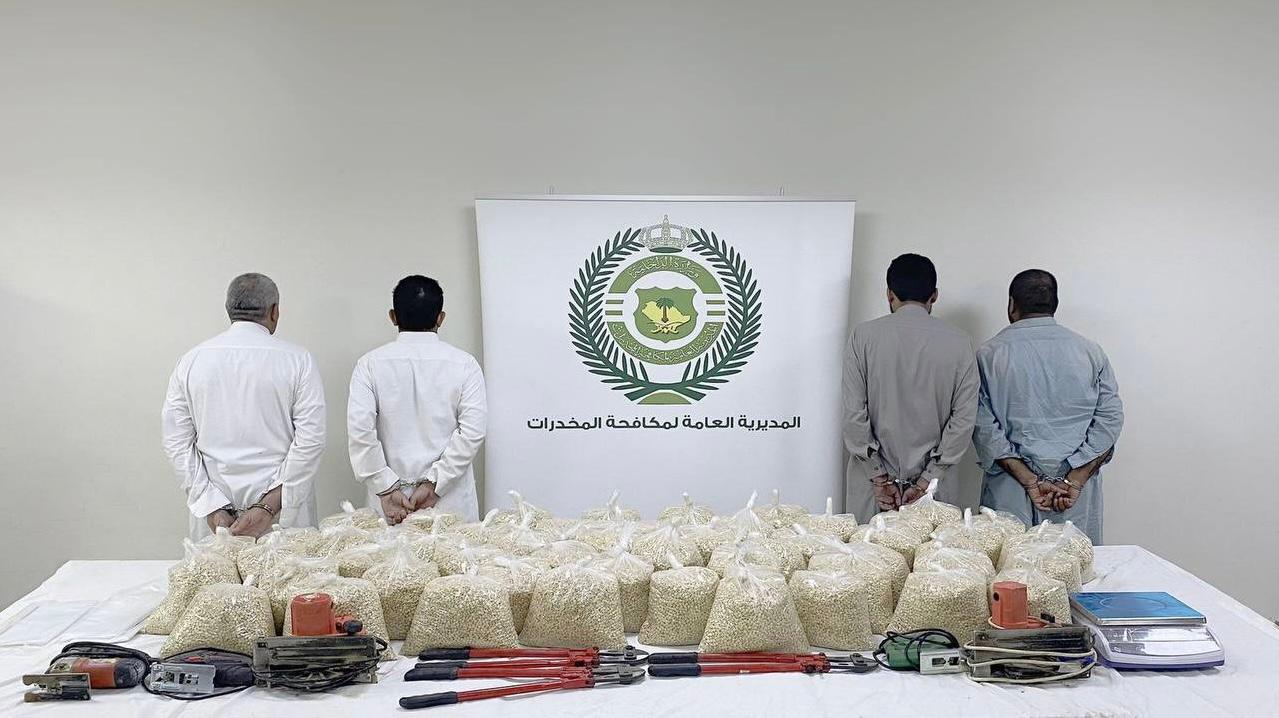 صرح المتحدث الرسمي للمديرية العامة لمكافحة المخدرات الرائد محمد النجيدي، بأن المتابعة الأمنية لشبكات تهريب وترويج المخدرات التي تستهدف أمن المملكة وشبابها، أسفرت عن ضبط (2,035,200) قرص من مادة الإمفيتامين المخدر، مخبأة داخل شحنة ألواح خشبية للمطابخ، والقبض على مستقبليها بمنطقة الرياض، وهم (4) أشخاص: مقيم ووافدان زائران من الجنسية السورية، ومقيم من الجنسية الباكستانية، وجرى إيقاف المتهمين واتخاذ الإجراءات النظامية الأولية بحقهم وإحالتهم إلى النيابة العامة.