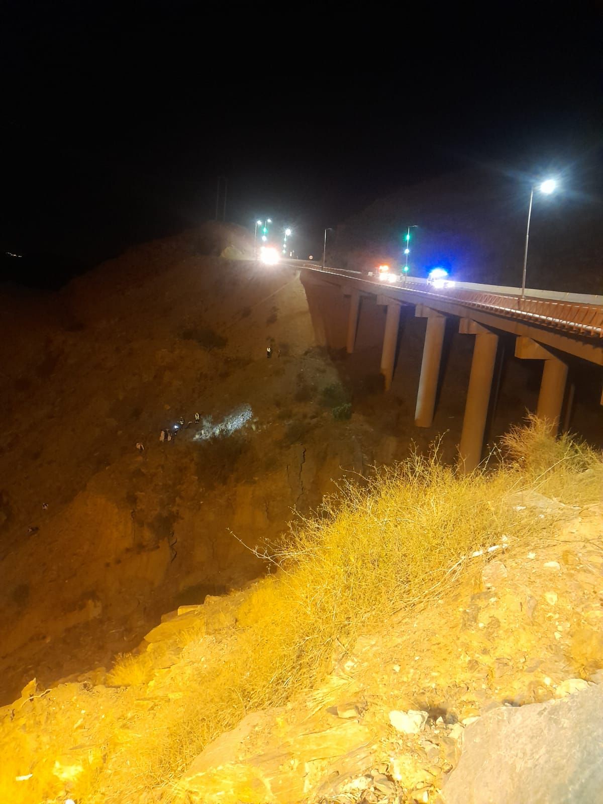 الهلال الأحمر بالباحة : حادث  انقلاب مروع باتجاه نزول بيده بجوار السد