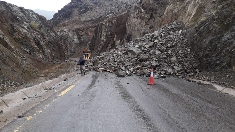 إغلاق طريق الفقرة بالمدينة بسبب انهيارات صخرية خطرة (صور)