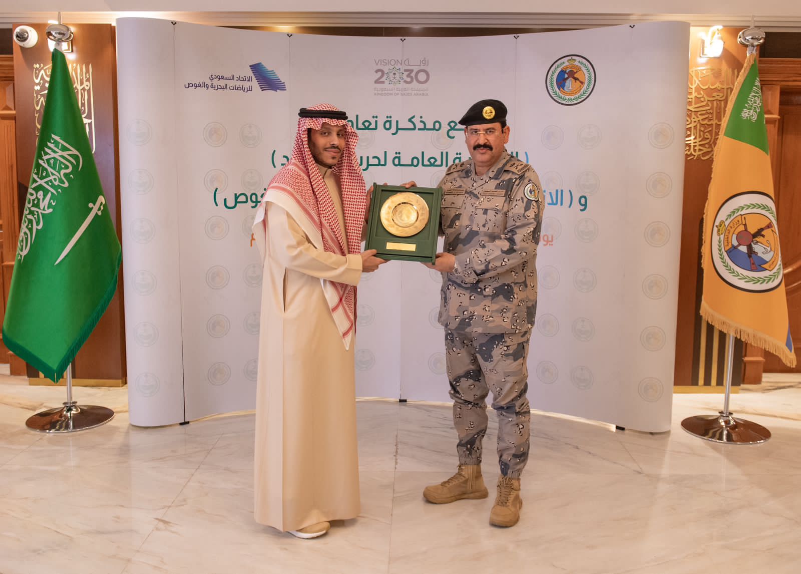 وقعت المديرية العامة لحرس الحدود والاتحاد السعودي للرياضات البحرية والغوص مذكرة تعاون، وذلك بحضور صاحب السمو الملكي الأمير سلطان بن فهد بن سلمان آل سعود رئيس مجلس إدارة الاتحاد السعودي للرياضات البحرية والغوص رئيس مجلس إدارة رابطة الرياضات المائية ومدير عام حرس الحدود اللواء محمد بن عبدالله الشهري.
