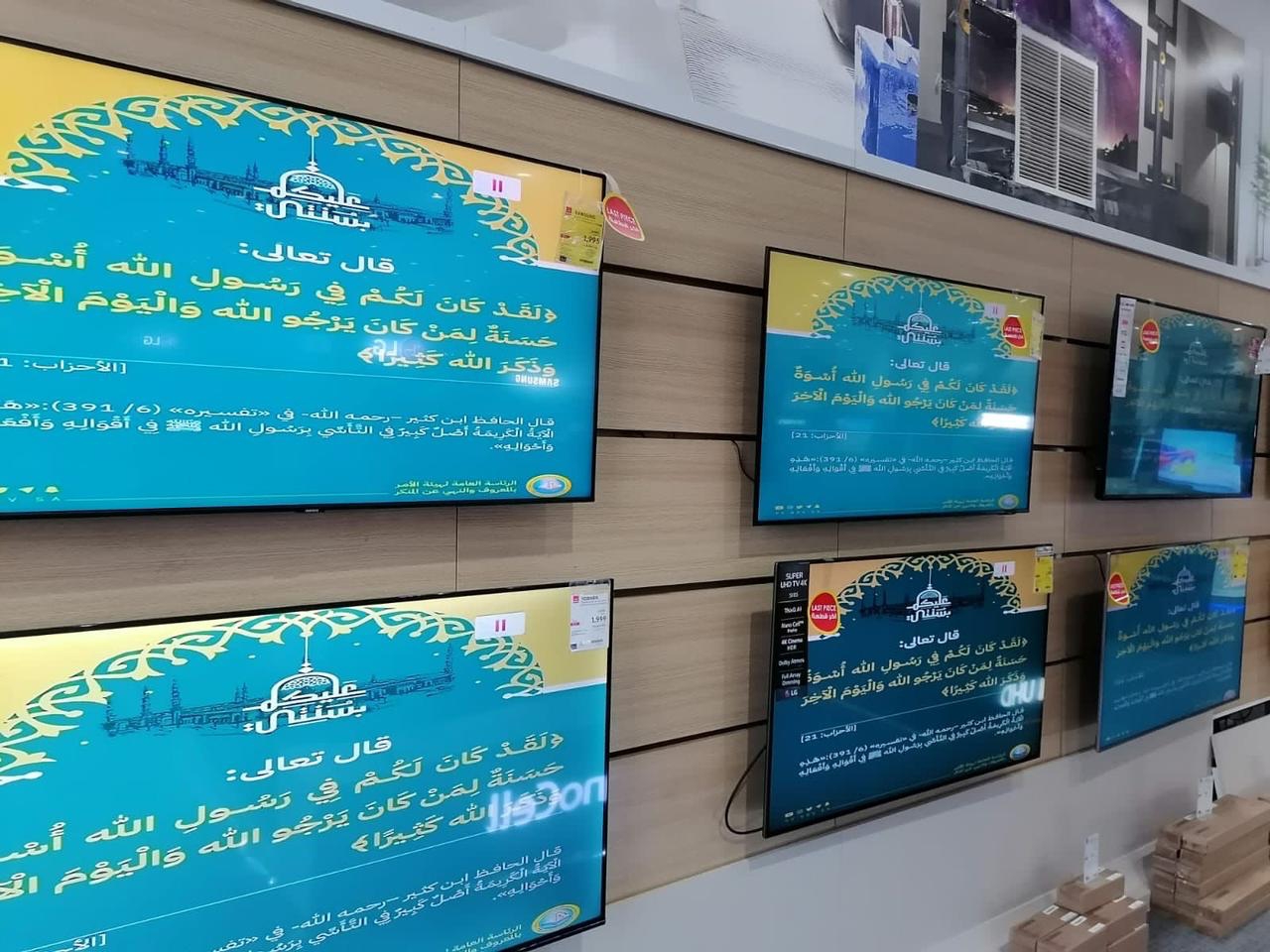 في إطار التعاون المشترك بين فرع الرئاسة العامة لهيئة الأمر بالمعروف والنهي عن المنكر بالمنطقة الشرقية والجهات الحكومية والأهلية ذات العلاقة ، فعلت هيئة محافظة الأحساء المحتوى التوعوي لحملة “ عليكم بسنتي “ مع جمعية البر بالمحافظة و مجمع العثيم مول عبر الشاشات الإلكترونية الداخلية والخارجية للمجمع .