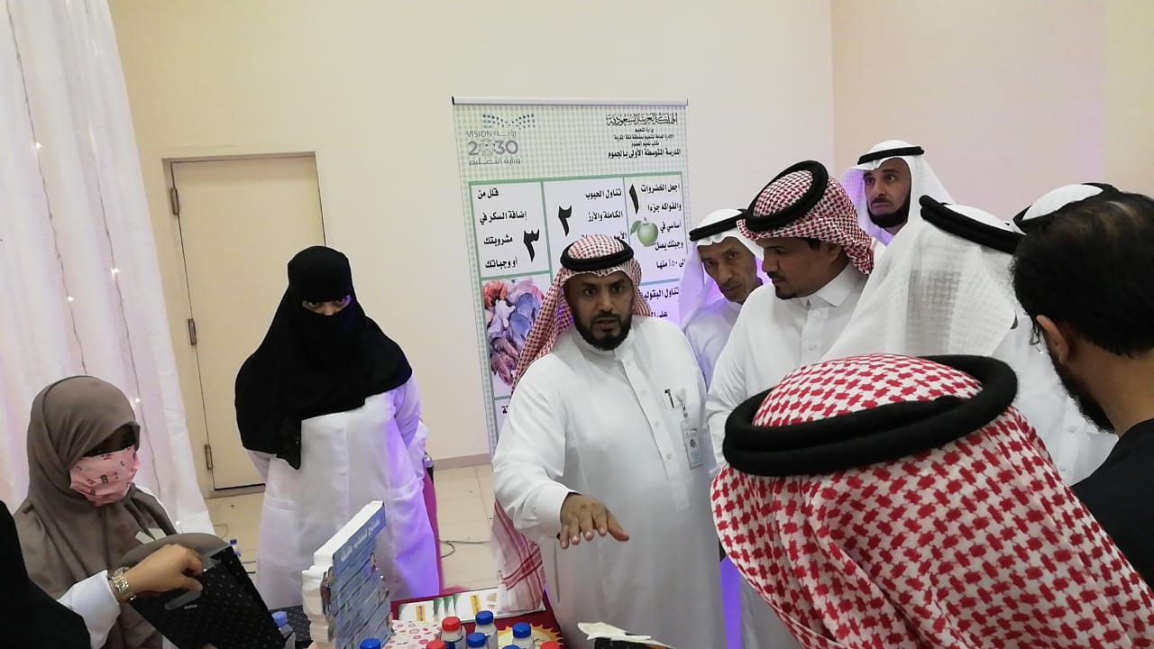 دشن محافظ محافظة الجموم المكلف الاستاذ / مشهورالمنعمي مبادرة أنتم بعيوننا بمشاركة الاستاذ / فايز العتيبي مدير مركز التنمية الاجتماعية بوادي فاطمة والدكتور/ سلطان معافى رئيس الاشراف الداعم بادارة الصحة العامة والدكتور/ عماد الجهني نائب مدير الامراض المزمنة والبرامج الصحية بإدارة الصحة العامة والاستاذ/ احمد وصل الحربي مشرف قطاع صحي الجموم والاستاذ /سالم البشري مدير مكتب وزارة الزراعة  بالجموم والاستاذ/ ثلاب الحسيني رئيس مجلس إدارة لجنة التنمية الاجتماعية بأبي عروة و الاستاذ / حمزة اللحياني قائد نادي الحي بمدرسة زيد بن أرقم والاستاذ/ صالح البركاتي قائد مشاة الجموم ومنسق مدينة الجموم الصحية الاستاذ / حمد اللحياني  وعدد من رؤساء الدوائر الحكومية ومدراء المراكز الصحية . وبعد ان شاهد الجميع تعريفا بالمبادرة والشراكات  وتعريف بالبرامج المنفذة هذا اليوم  الاحد الموافق ٢٦-٢-١٤٤٠  تحت هذه المبادرة من الاستاذ/ صالح البركاتي والذي تناول كذلك بالشرح الغذاء الصحي والوجبة الكاملة . قام الدكتور/  اياد تنكر بشرح مبسط عن هشاشة العظام ماهي؟ وكيفية اكتشافها وطرق المحافظة قبل الاصابة بها ثم شارك الجميع في افتتاح المعرض ومشاهدة شرح تفصلي من قبل المختصين والمختصات عن محتويات المعرض من منسوبي المراكز الصحية بالجموم و منسقي برنامج التمكين المجتمعي والتثقيف الإكلينيكي الأستاذ / عبيدالله الصاعدي والأستاذة / شذى اللحياني