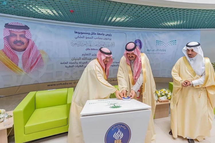 دشن صاحب السمو الملكي الأمير عبدالعزيز بن سعد بن عبدالعزيز أمير منطقة حائل بالمدينة الجامعية, اليوم, مشروع مبنى كلية الصيدلة ومبنى الصحة العامة والمعلوماتية الصحية ومبنى الكليات النظرية بجامعة حائل بمبلغ إجمالي بلغ 263 مليون ريال, بحضور معالي وزير التعليم الدكتور يوسف بن عبدالله البنيان ورئيس الجامعة الدكتور راشد بن مسلط الشريف.