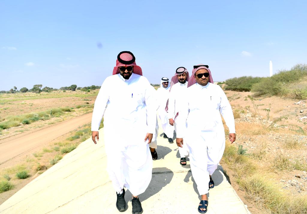 واستمع خلال جولته التي شملت قرى خبت بن جبران، والكنًّة، وخِليِّج، والشعوف، والهجنبة، وجر أبو العشر, مستمعاً لشرح مفصَّل من رئيس البلدية المهندس ناصر عطيف، عن المصدات الرملية و مسارات الأودية التي تصبُّ فيها السيول القادمة من وادي ريم ووادي عرمرم ، ومشاريع درء مخاطر السيول، مشدَّداً على ضرورة اتخاذ التدابير اللازمة، ووضع الخطط الاستباقية ورفع الجاهزية، والاستفادة من التجارب والملحوظات السابقة ومعالجتها، وتكثيف التوعية بمخاطر السيول، ووضع اللوحات والتعليمات التحذيرية على أماكن مرتفعة بمحيط الأودية ومعابرها.