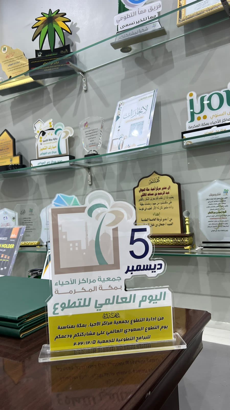 حيث تم تكريم المركز بدرع قدّمه العسيري ، أعد خصيصاً لهذه المناسبة ، ويعتبر هذا التكريم تقديراً للمركز ولمايقدمه من أنشطة ، ودعمه لفريق عين مكة الإعلامي التطوعي التابع لإدارة التطوع بجمعية مراكز الأحياء بمكة المكرمة ، وأيضا بمناسبة اليوم العالمي والسعودي للتطوع .
