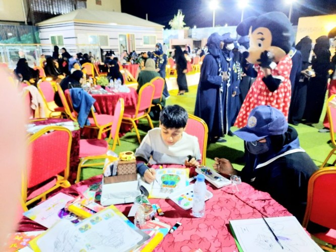 ثم توالت الفقرات من العاب ورسم ومسابقات وشخصيات كرتونية وساهمت فرقة مرشدات مكة المكرمة في تنفيذ مسيرة للابناء كما تنوعت الرسمات للأبناء على الوجه وعلى الاوراق مع التلوين وتم تكريم الطفلة فاطمة الشريف كونها مبدعه في الرسم والعمل الفني وفي نهاية الاحتفاء تم تكريم الداعمين وفي مقدمته