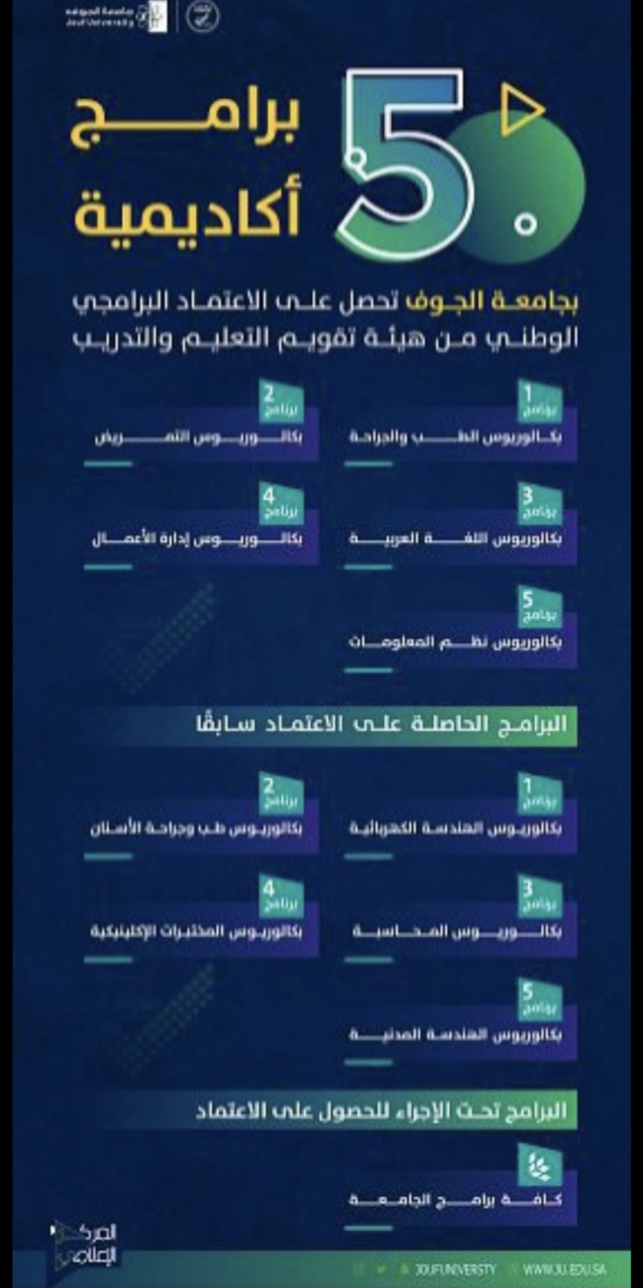 خمسة برامج بجامعة الجوف تحصل على الاعتماد البرامجي الوطني