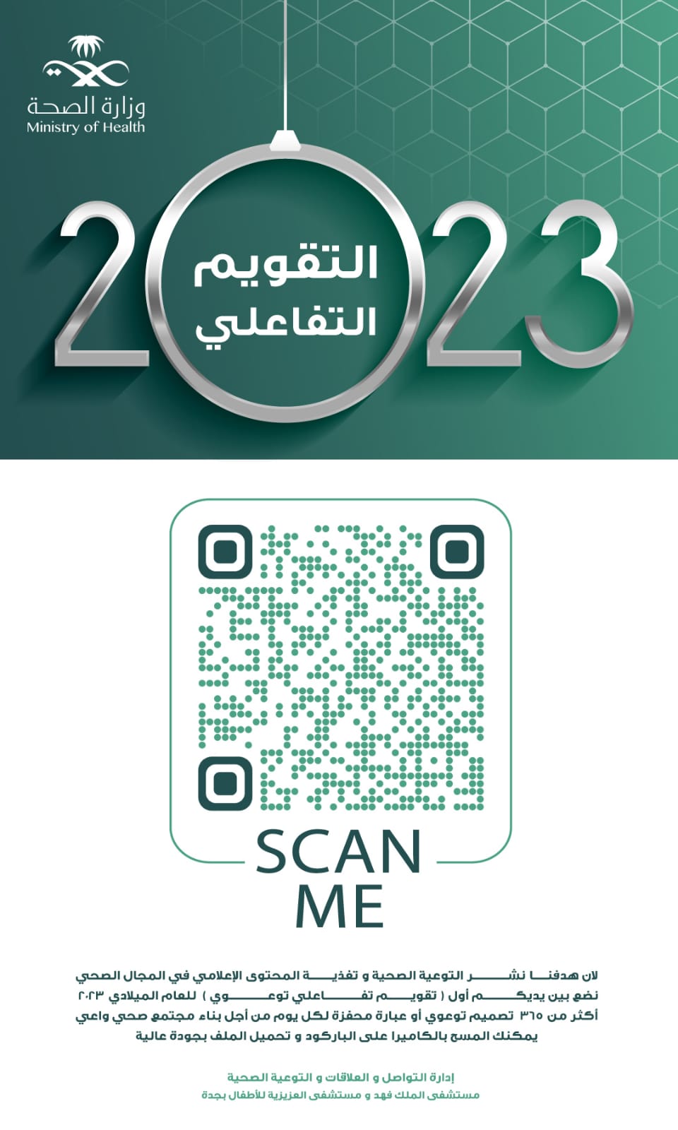 اطلق مستشفى الملك فهد بجدة التقويم التوعوي الاول من نوعه برعاية المشرف العام على مستشفى الملك فهد ومستشفى العزيزية للاطفال بجدة الدكتور محمد حسن باجبير ويهدف التقويم التفاعلي التوعوي الى نشر التوعية الصحية وتغذية المحتوى الاعلامي في المجال الصحي حيث يضم التقويم اكثر من 365 تصميم توعوي او عباره محفزة لكل يوم من اجل بناء مجتمع صحي واعي