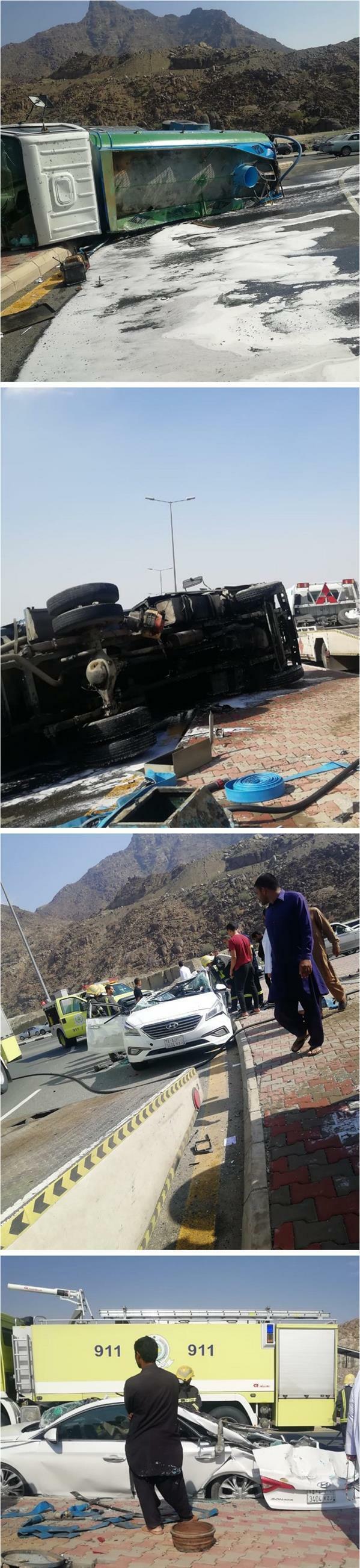 نجت امرأة أثناء قيادة سيارتها، من حـادث مروري مروع على طريق الشرائع – منى بمكة المكرمة، اليوم الإثنين، بعد أن اصطـدمت بـ”وايت”، ما أدى لانقلابه، وحدوث تلفيات كبيرة في المركبتين.
