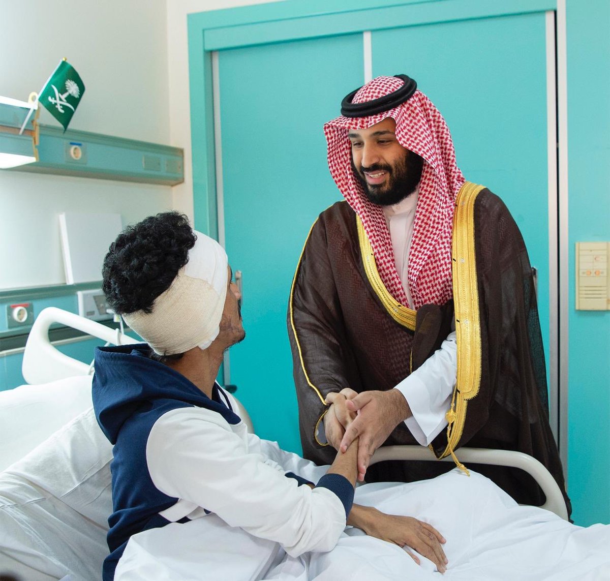 بالصور.. ولي العهد يطمئن على حالة مصابي الحد الجنوبي