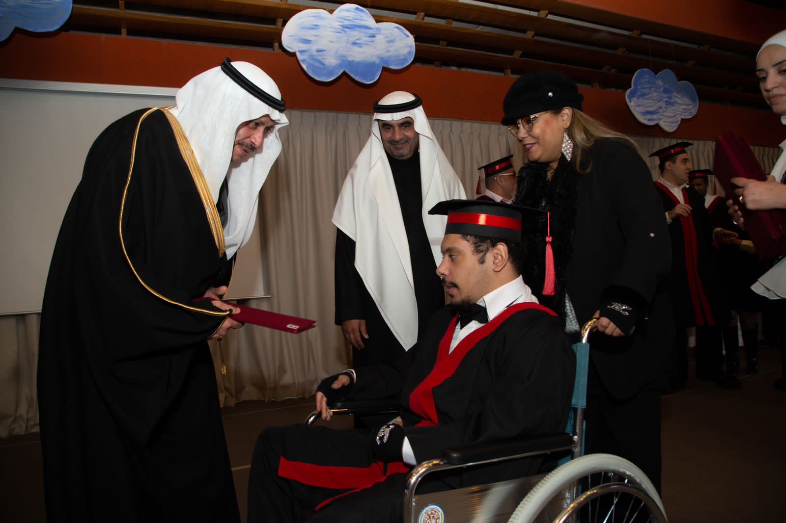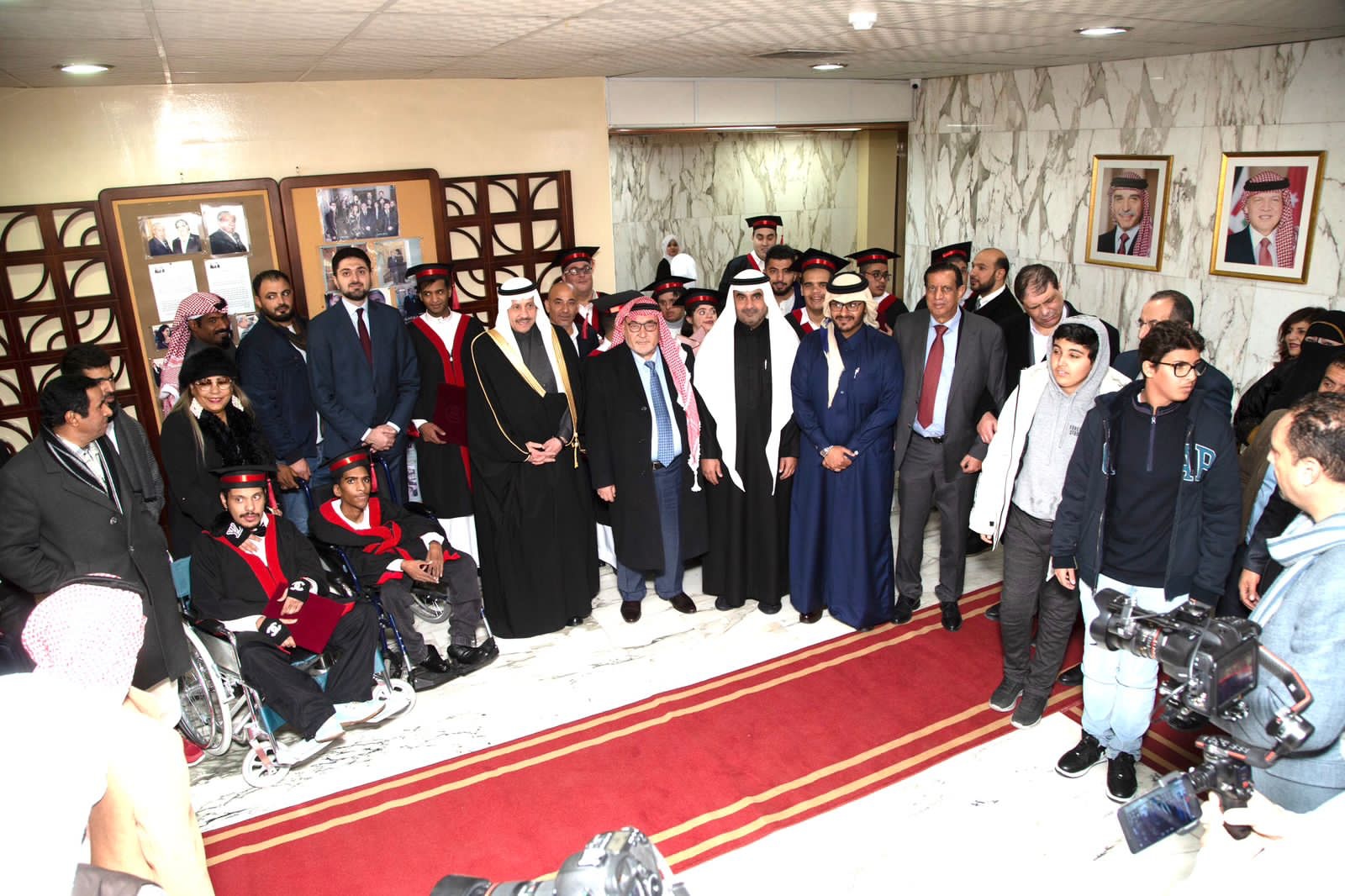 وفي نهاية الحفل كرم راعي الحفل سعادة السفير وسعادة الملحق وعطوفة رئيس الجامعة الطلبة الخريجين من ذوي الاعاقة من برنامج الدبلوم من الجامعة الهاشمية