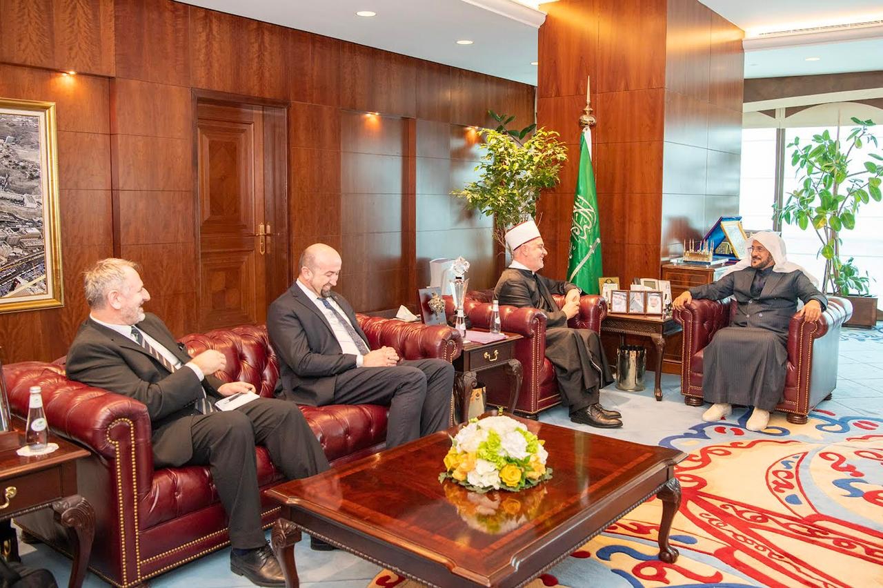 وفي مستهل اللقاء، رحب معالي الوزير بمعالي رئيس المشيخة الإسلامية المفتي العام للبوسنة والهرسك والوفد المرافق، مبيناً أن البوسنة والهرسك هي محل عناية واهتمام حكومة خادم الحرمين الشريفين الملك سلمان بن عبدالعزيز آل سعود، وسمو ولي عهده الأمين صاحب السمو الملكي الأمير محمد بن سلمان بن عبدالعزيز ــ حفظهم الله ــ، الذين يولون المسلمين في جميع انحاء العالم اهتمام وعناية، كما يخصون المشيخات الإسلامية والمراكز والجمعيات بمزيد من العناية والاهتمام في إطار الدور الريادي الذي تضطلع به المملكة لخدمة المسلمين بالعالم.