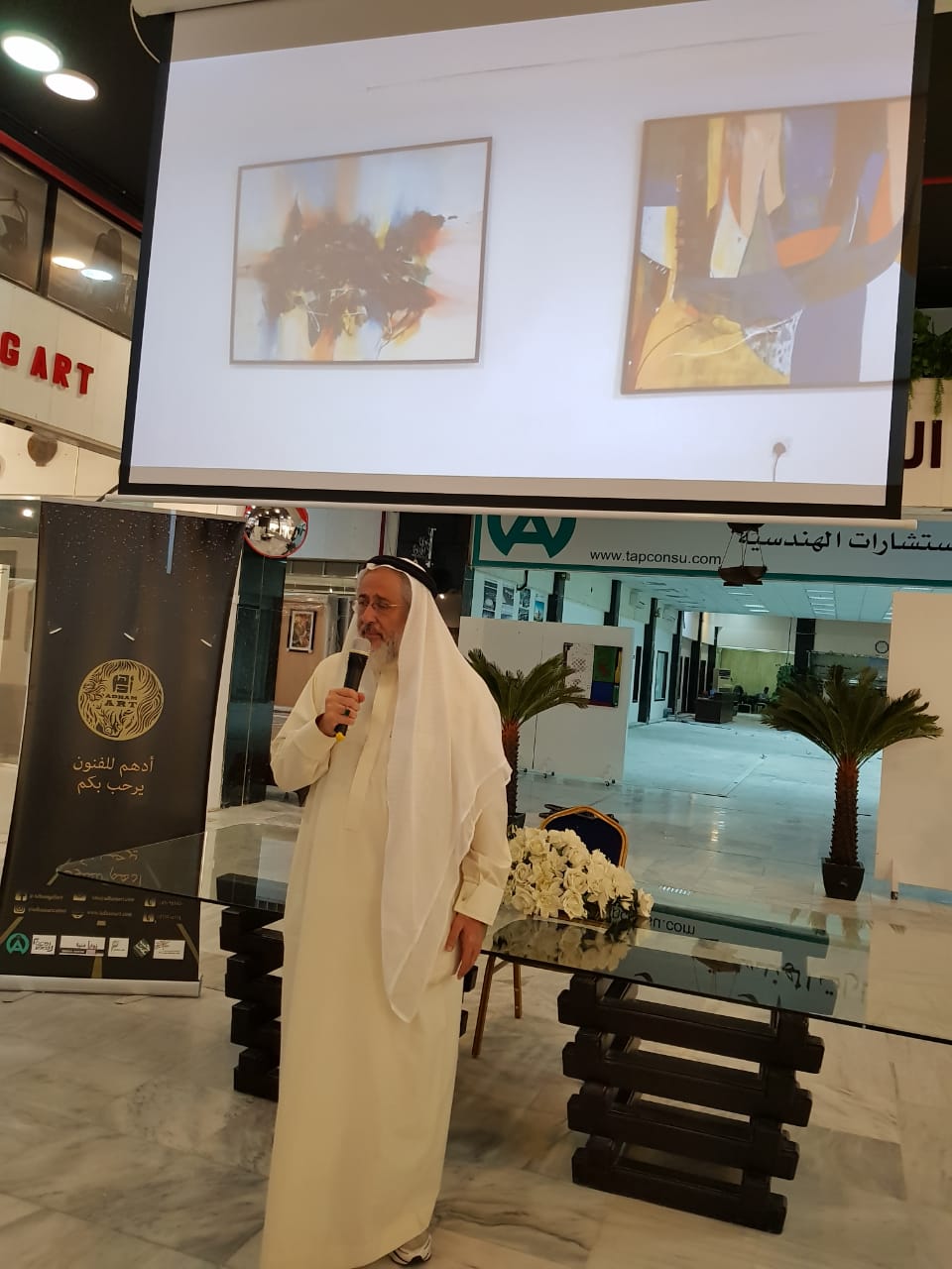 افتتح المهندس لؤي حكيم معرض ” لمسات شعريه ” للفنان التشكيلي طلعت عبد العزيز وهو المعرض الختامي له قبل سفره إلى جمهورية مصر العربية ، بمعرض رؤى الفن للفنان القدير هشان بنجابي بمركز ادهم للفنون في تمام الساعه الثامنه والنصف مساء يوم الاثنين ٢٧صفر ١٤٤٠الموافق ٥نوفمير ٢٠١٨