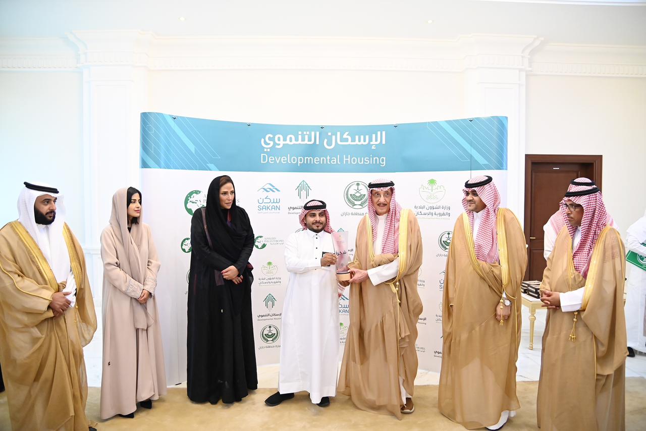وفي ختام مراسم التوقيع سلم سمو أمير جازان ٣٥٤ وحدة سكنية ، و١٧ سيارة لعدد من مستفيدي الإسكان التنموي بالمنطقة.