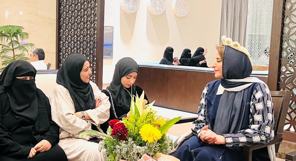 إستقبلت سمو الأميرة هند بنت عبدالرحمن آل سعود بمقر إقامتها بفندق جراند ميلينيوم مساء الأمس الوفد الزائر لها من جمعية كسوة الكاسي بمحافظة أبو عريش بقيادة عضو المجلس المحلي بمحافظة أبي عريش ورئيسة الجمعية الأستاذة فاطمة بنت أحمد عقيل السهلي والفريق التطوعي معها يداً بيد وذلك للترحيب بسموها الكريم ونقل ترحيب نساء المنطقة بها متمنيات أن لاتكون الزيارة الاخيرة لجازان الحبيبة.