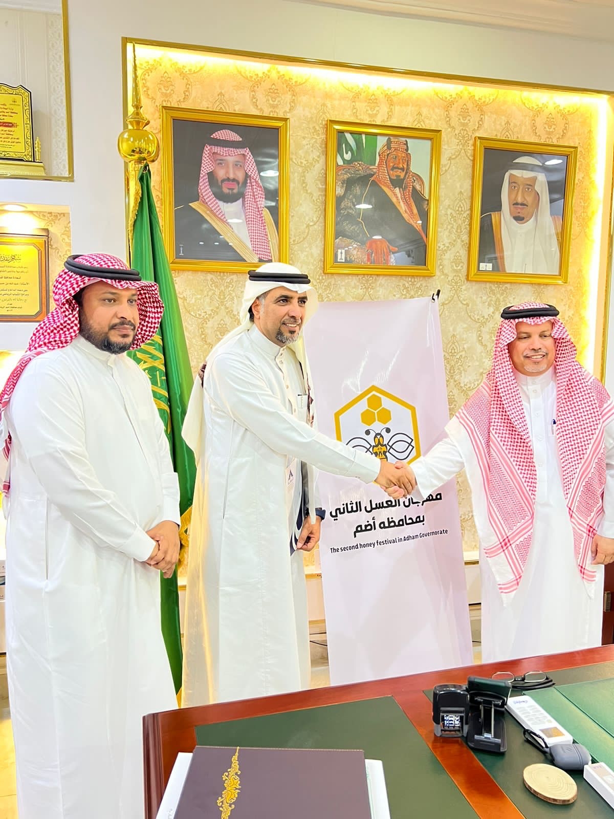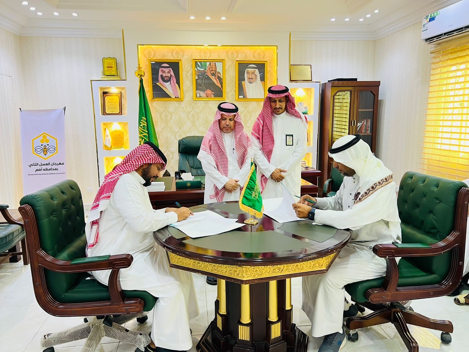 شهدت محافظة أضم مراسم توقيع عقود الرعاية والتنظيم لمهرجان العسل الثاني بأضم بين جمعيات التنمية والبر بالمحافظة و مؤسسة وسام البادية بحضور سعادة محافظ أضم الأستاذ : عبدالله بن حسن الفيفي ورئيس بلدية أضم المهندس عمر الزهراني ورؤساء الجمعيات الخيرية والقطاع غير الربحي .