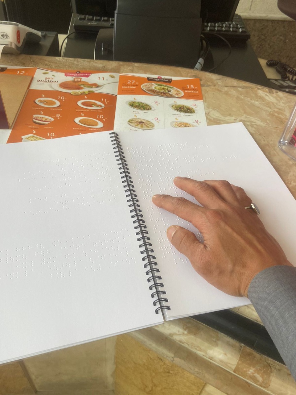 وتهدف المبادرة الى تمكين ودمج فئة ذوي الإعاقة من ” المكفوفين” في المجتمع، حيث تتيح لذوي الإعاقة من المكفوفين قراءة قائمة الطعام بالمطاعم بطريقة ” برايل”.