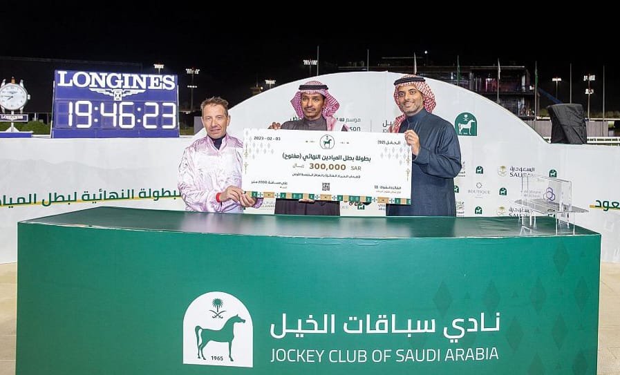 كما حقق جائزة البطولة النهائية لبطل الميادين كل من: الفرس سنه للمالك محمد المرزوقي “افراس”، والجواد الكاسر، للمالك مشعل المطيري، والجواد بدر العلياء لأبناء الشريف هزاع شاكر العبدلي، وسلم مدير السباقات بنادي سباقات الخيل سالم بن محفوظ الجوائز للفائزين، وذلك في الحفل الـ 92 ضمن موسم سباقات الرياض2023, الذي نظمه اليوم نادي سباقات الخيل في ميدان الملك عبدالعزيز بالجنادرية.