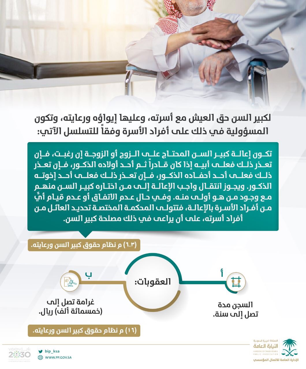 وأفادت في تغريدة عبر حسابها الرسمي على “تويتر” لان: “لكبير السن حق العيش مع أسرته، وعليها إيواؤه ورعايته، وتكون المسؤولية في ذلك على أفراد الأسرة وفقاً للتسلسل الآتي: