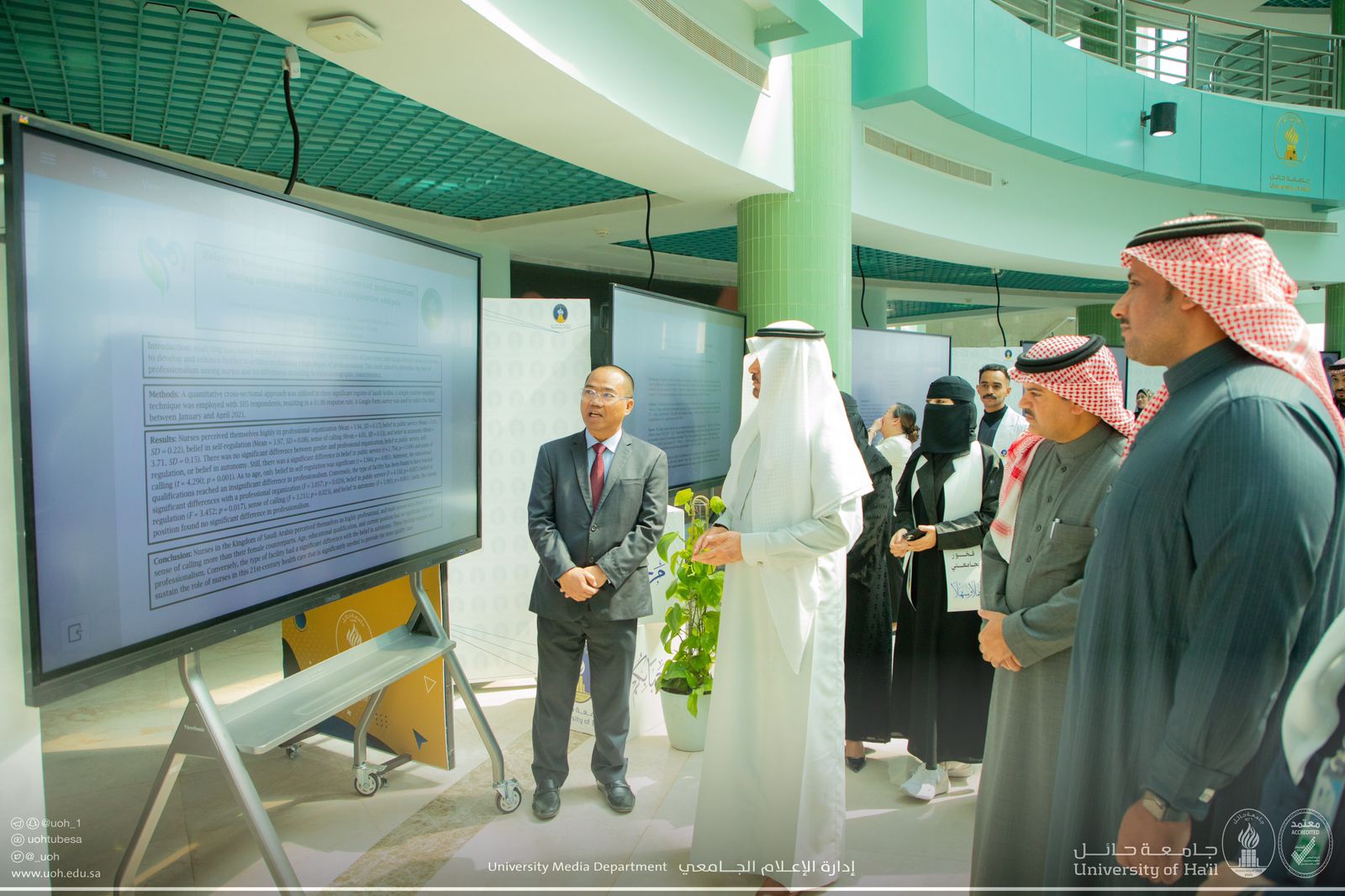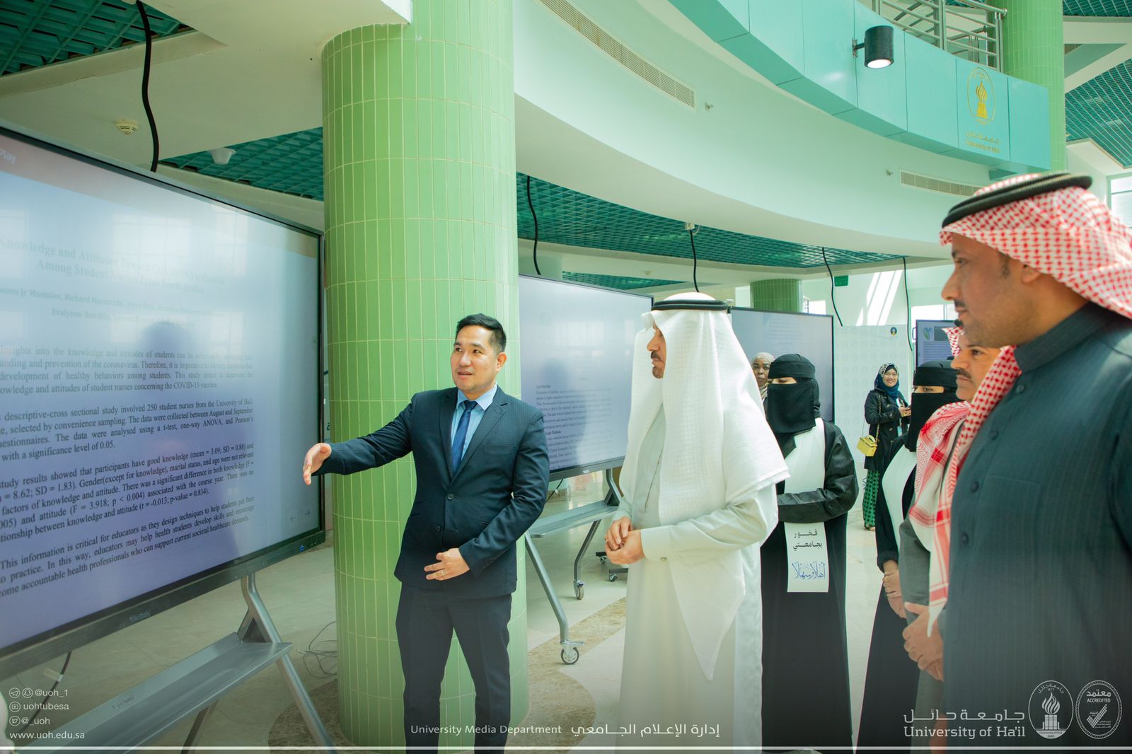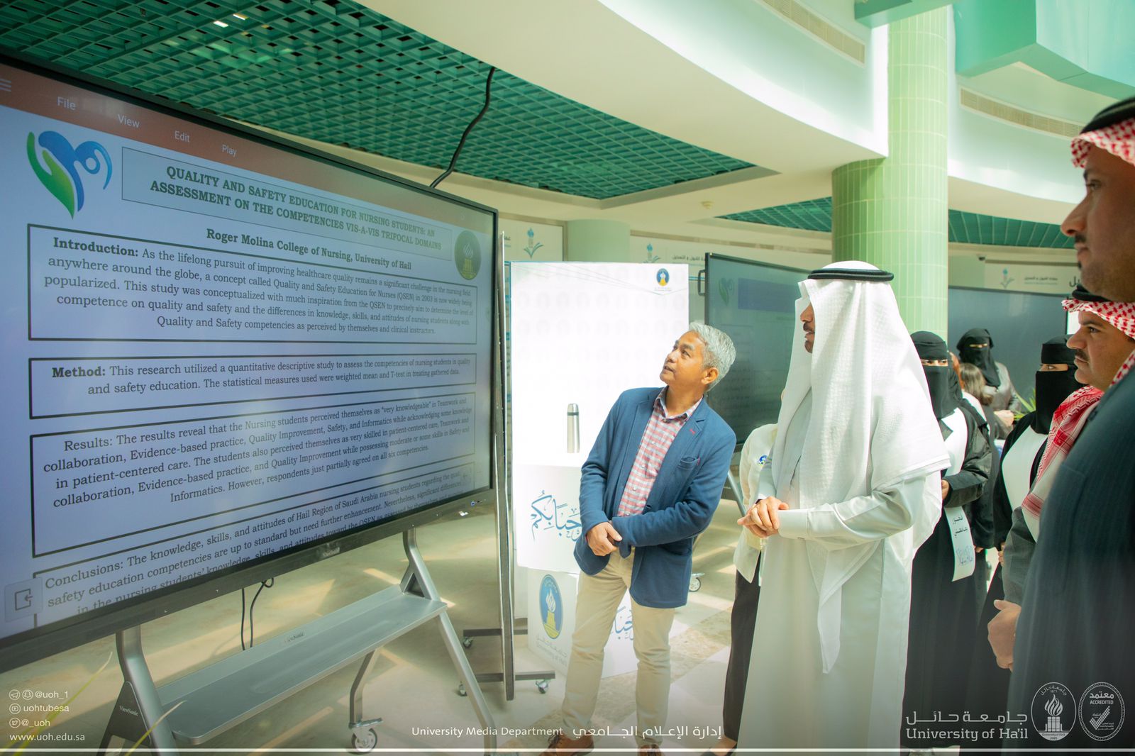واستعرض والحضور الملصقات العلمية المصاحبة للمؤتمر، وأوضح رئيس اللجنة العلمية للمؤتمر، عميد كلية التمريض، الدكتور بندر بن سعد البقعاوي، أن المؤتمر يهدف إلى رفعِ جودةِ الحياةِ وتحسينِ الرعايةِ الصحية للمرضى وعائلاتِهم، من خلال ما يمتلكه المشاركون من معارفَ ومعلوماتٍ ومهارات إكلينيكية، تساعدهم على تقييم ومراقبة وتشخيص حالة المريض، وتقديم التدخل السريع عند الحاجة، مثل إجراء الإنعاش القلبي الرئوي، أو الإسعافات الأولية، مشيراً إلى أنه تم اعتمادُ المؤتمر من الهيئة السعودية للتخصصاتِ الصحية.