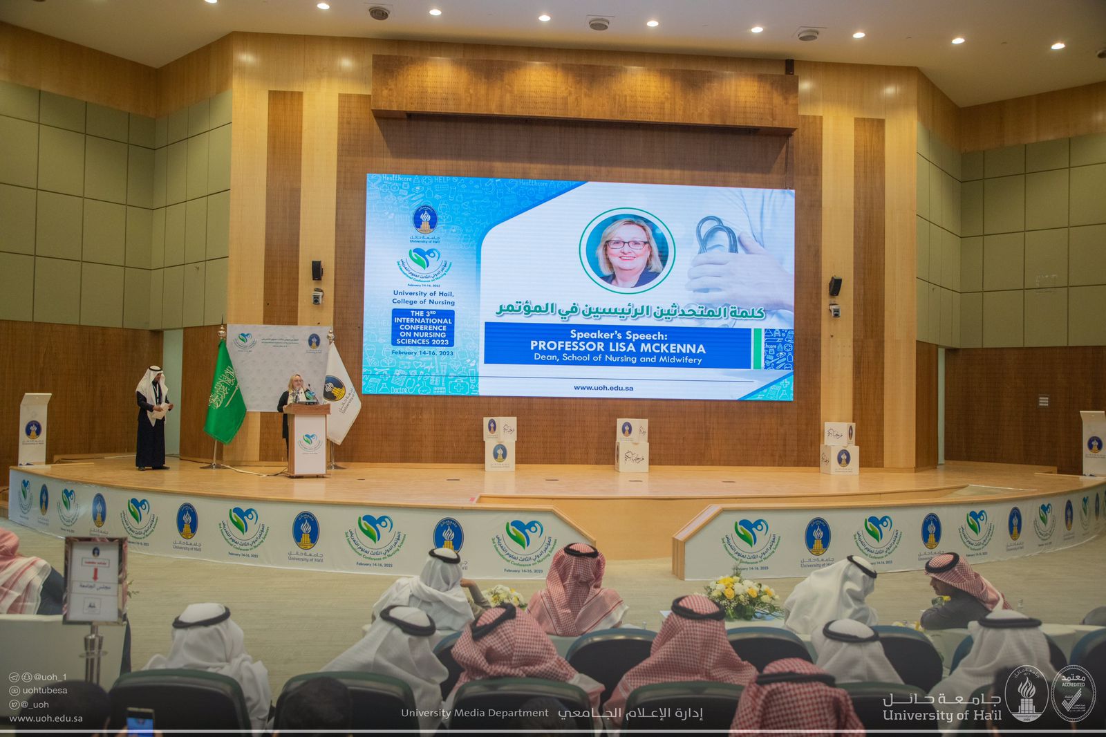 كما ألقت عميد كلية التمريض في جامعة لاتروب الأسترالية، الدكتورة ليسا مكينا، كلمة المتحدثين في المؤتمر، أشادت فيها بجهود جامعة حائل المتمثلة في تنظيم هذا المؤتمر الذي يركز على أبرز الممارسات والمستجدات البحثية في مجال التمريض.