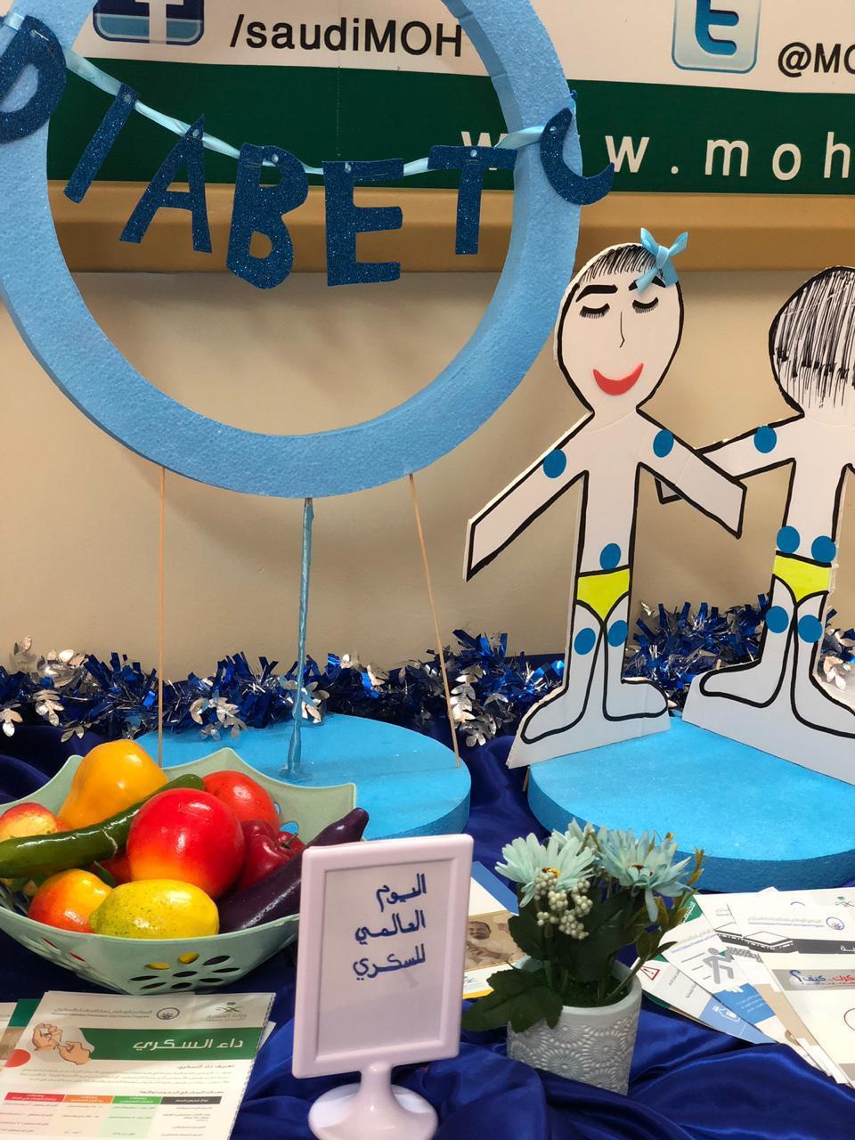 إيماناً بدور المراكز الصحية في توعية وتثقيف المجتمع نفذ مركز الرعاية الصحية الأولية بالصفا الإسبوع الماضي معرضاً توعوياً احتوى ثلاثة أركان وقد اختص الركن الأول بالتثقيف بداء السكري بمناسبة اليوم العالمي للسكري والذي يوافق 14 من نوفمبر من كل عام ميلادي للتوعية من مخاطر داء السكري وأهمية الوقاية من هذا المرض بالكشف المبكر ، كما تم في هذا الركن توضيح أهمية التغذية الصحية السليمة وممارسة الرياضة للجميع سواء من المصابين بالمرض أو غير المصابين حتى لا يكونوا عرضة للإصابة بالسكري .