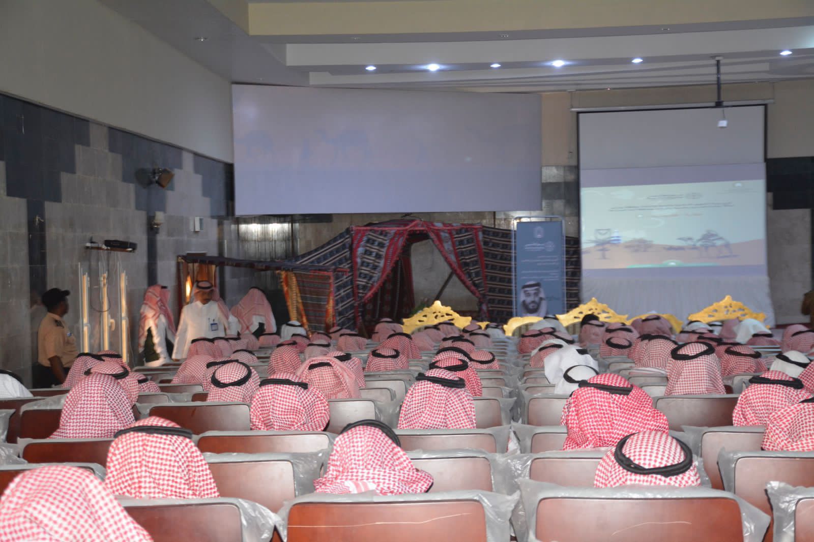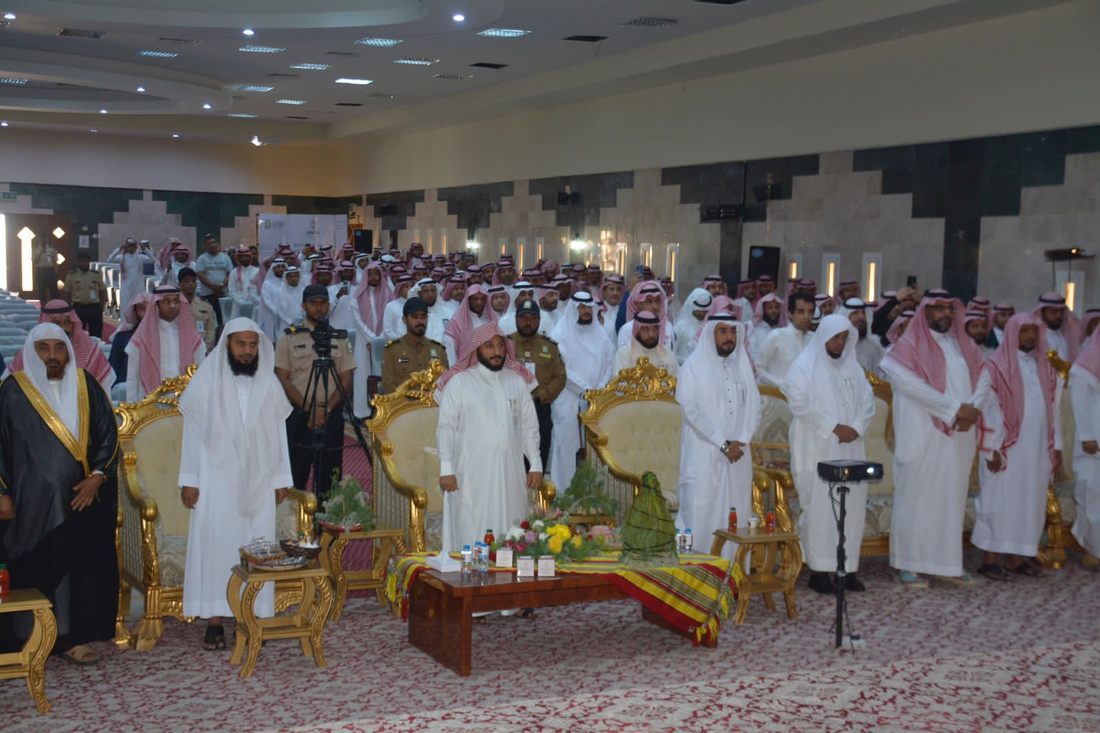 وفي التفاصيل، بدأت فقرات الاحتفاء بقاعات المحاضرات بالفرع بآيات بينات من كتاب الله عز وجل ثم كلمة لفضيلة مدير عام الفرع الشيخ أسامة مدخلي تحدث فيها عن تاريخ الدولة السعودية التي قامت على يد الأمام محمد بن سعود بتحكيم شرع الله وسنة المصطفى صلى الله عليه وسلم وبناء دولة حضارية قوية استمرت مسيرتها العطرة إلى عهدنا الزاهر الذي نعيشه اليوم في ظل قيادة خادم الحرمين الشريفين الملك سلمان بن عبد العزيز وولي عهده الأمين حفظهما الله وأضاف المدخلي ثلاثة قرون من الإنجاز والدعوة والإرشاد ولازلنا على هذا النهج .
