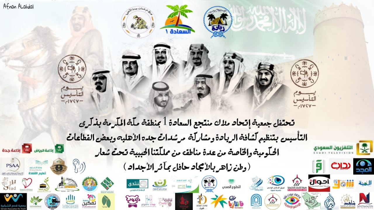 تحت شعار ‘وطن زاهر بالامجاد حافل بمآثر الاجداد ‘وبرعاية كريمة من صاحبة السمو الملكي الأميرة مشاعل بنت مقرن بن عبدالعزيز آل سعود اقامت جمعية اتحاد ملاك منتجع السعادة 1 وكشافة الريادة بالتعاون مع كشافة جدة الاهلية وعدد من الجهات الحكومية والخاصة والصحية والتطوعية
