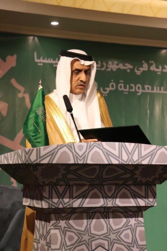 واستهل الحفل الخطابي المعد بهذه المناسبة بكلمة لسفير خادم الحرمين الشريفين فيصل العامودي رفع من خلالها التهنئة لمقام خادم الحرمين الشريفين الملك سلمان بن عبدالعزيز آل سعود، ولصاحب السمو الملكي الأمير محمد بن سلمان بن عبدالعزيز ولي العهد رئيس مجلس الوزراء -حفظهما الله- وشعب المملكة بمناسبة يوم التأسيس.