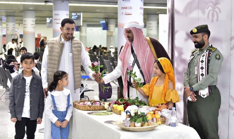 احتفلت المديرية العامة للجوازات بمناسبة يوم التأسيس عبر إدارات الجوازات بالمنافذ الدولية في كافة مناطق المملكة، من خلال استقبال المسافرين بكل حفاوة وترحاب وتقديم الورود والهدايا التذكارية لهم بهذه المناسبة.