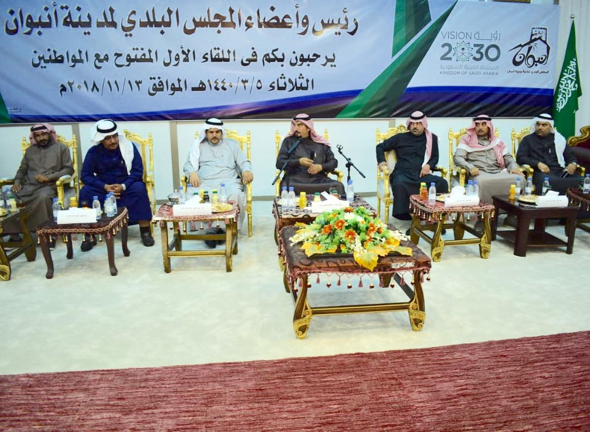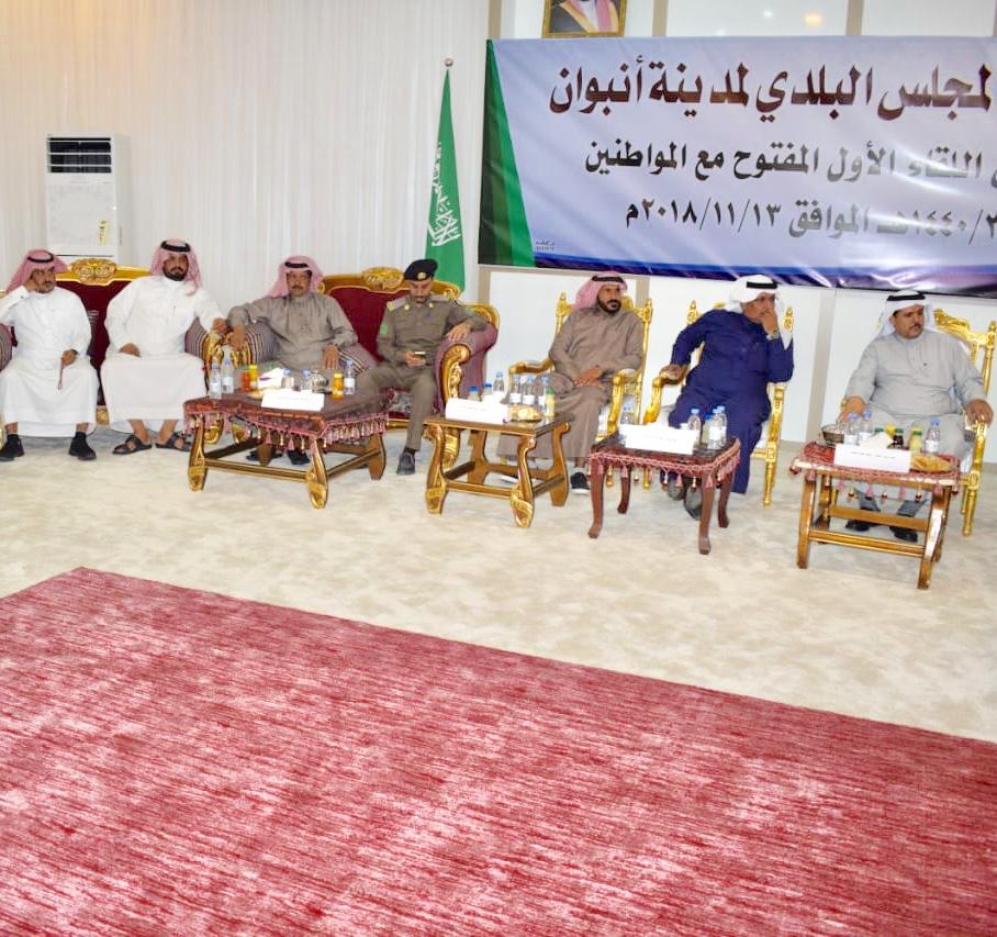 عقد المجلس البلدي لمدينة انبوان لقاؤه الأول مع المواطنين اليوم الثلاثاء 5 /3/ 1440هـ، بحضور رئيس وأعضاء المجلس البلدي وكذلك بحضور رئيس مركز مدينة انبوان بدر عويد الشمري، ورئيس مركز ضرغط ذاكر الشمري، ورئيس مركز الخفج ساكر الاشقح بن قعبوب الرشيدي، وقد بداء اللقاء بالاعلان عن انعقاد المجلس بان ألقى رئيس المجلس البلدي لبلدية مدينة انبوان الأستاذ عبدالجليل بن متعب بن براك كلمة أشار فيها  الى الرؤية الحكيمة لحكومة خادم الحرمين الشريفين التي تهدف إلى إشراك المواطن في العملية التنموية، والتطويرية للبلاد، وكذلك أشار الى أهمية اشراك المواطنين في اتخاذ القرار ، مشيراً إلى أننا نقف على مرحلة جديدة عبر رؤية المملكة العربية السعودية 2030 التي تعد نافذة لمستقبل مشرق، وتمثل تحولاً تاريخياً للوطن والمواطن، وأن الوطن – كل الوطن- يستبشر كل الخير بالتحول الوطني والنقلة النوعية المنتظرة، وأن رؤية 2030 ليست مجرد أرقام، بل عمل وأمل ومشاركة من الجميع وجهد حكومي وشعبي طموح يحقق الرخاء والازدهار لنا وللأجيال القادمة بعون الله تعالى. كما تم من خلال اللقاء تقديم عرض يحتوي على مــا تم انجازه من مشاريع بلدية.