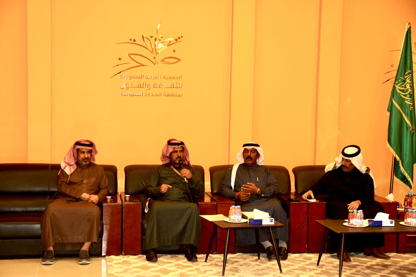 نظمت جمعية الثقافة والفنون بمنطقة الحدود الشمالية بالتعاون مع مقهى أرجوحة شرقية الأدبي ، أمسية شعرية خاصة بيوم التاسيس أحياها الشاعر القدير مروي السديري مشرف لجنة الموروث الشعبي بالجمعية وأدارها الدكتور فايز الهويدي، وسط حضور عدد من المثقفين والمثقفات، وذلك بقاعة المركز الثقافي بالجمعية .