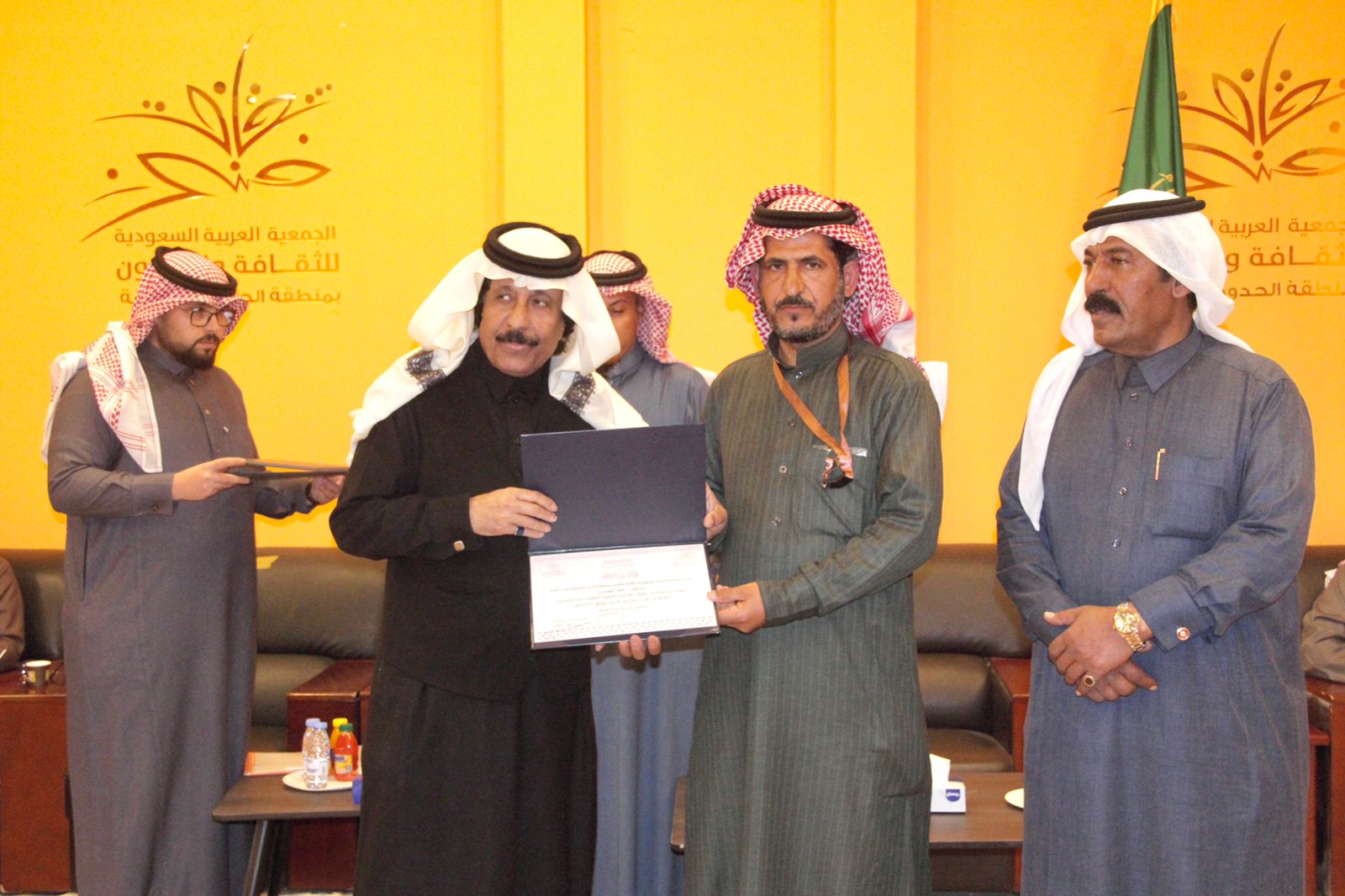 وفي نهاية الأمسية قام مدير الجمعية الاستاذ خلف القاران بتكريم المشاركين .