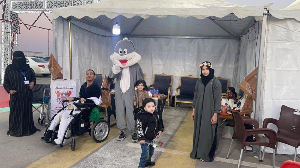 التي تستهدف ذوي الاحتياجات الخاصة بمناسبة ذكرى التأسيس .لنشعرهم الفرحة والمشاركة في هذا اليوم العظيم .وتقديم الضيافة التمر وزبد والبن والبقل احياء لتراث اجدادنا بهذا اليوم يوم النأسيس وقدم ايضاً اعضاء الفريق الشخصيات الكرتونيه ورسم على الوجه والعب والمرح معاهم لإدخال الفرحة لهذي الفئه الغالية علينا وتقديم الهدايا والوجبات . تحت أشراف جمعية التنمية الاهلية بعرعر.