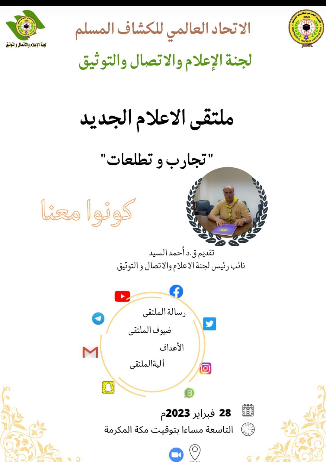 بدأت أولى جلسات ملتقى الاعلام الجديد ( تجارب وتطلعات ) وكانت الجلسة الافتتاحية شهدت كلمة لسعادة الأمين العام للاتحاد العالمي للكشاف المسلم الدكتور زهير بن حسين غنيم قدم خلالها شكره للجنة الاعلام والاتصال والتوثيق بالاتحاد على جهودهم المبذولة في هذا الملتقى وفي كافة برامج اللجنة وأوضح سعادته بأن الأسلوب والنهج الإعلامي الجديد شهد تغير خصوصاً مع ظهور وسائل التواصل الاجتماعي والتي يجب الاستفادة منها وتسخيرها لخدمة الكشفية . كما أكد على أهمية التنوع في ممارسة الإعلام الكشفي وعدم التركيز على جانب واحد فقط ، بعد ذلك داخل القائد الكشفي علي بن عبدالعزيز العلي رئيس لجنة الاعلام والاتصال والتوثيق في الاتحاد والذي اكد من خلالها على حرص اللجنة على التنوع فيما تقدمة من برامج وأنشطة خلال الخطة الحالية للجنة لعام ٢٠٢٣ م وأنها ستشهد برامج نوعية حضورية سيكون لها الأثر على الميدان الاعلامي الكشفي الاسلامي وذلك بمشاركة مع جهات متخصصة ، كما وجه شكره وتقديره لفريق العمل في لجنة الاعلام على جهودهم في التحضير والاعداد والتنسيق هذا وكان مقدم الجلسة الافتتاحية الدكتور حسن السيد قد استعراض ماهية الملتقى ورسالته وأهدافه وآليته وضيوف الملتقى ، واختتم حديثه بتقديم الشكر والتقدير لكل من شارك في الجلسة الافتتاحية ووجه لهم الدعوة لحضور الجلسات القادمة والتي سيعلن عنها في حينه .